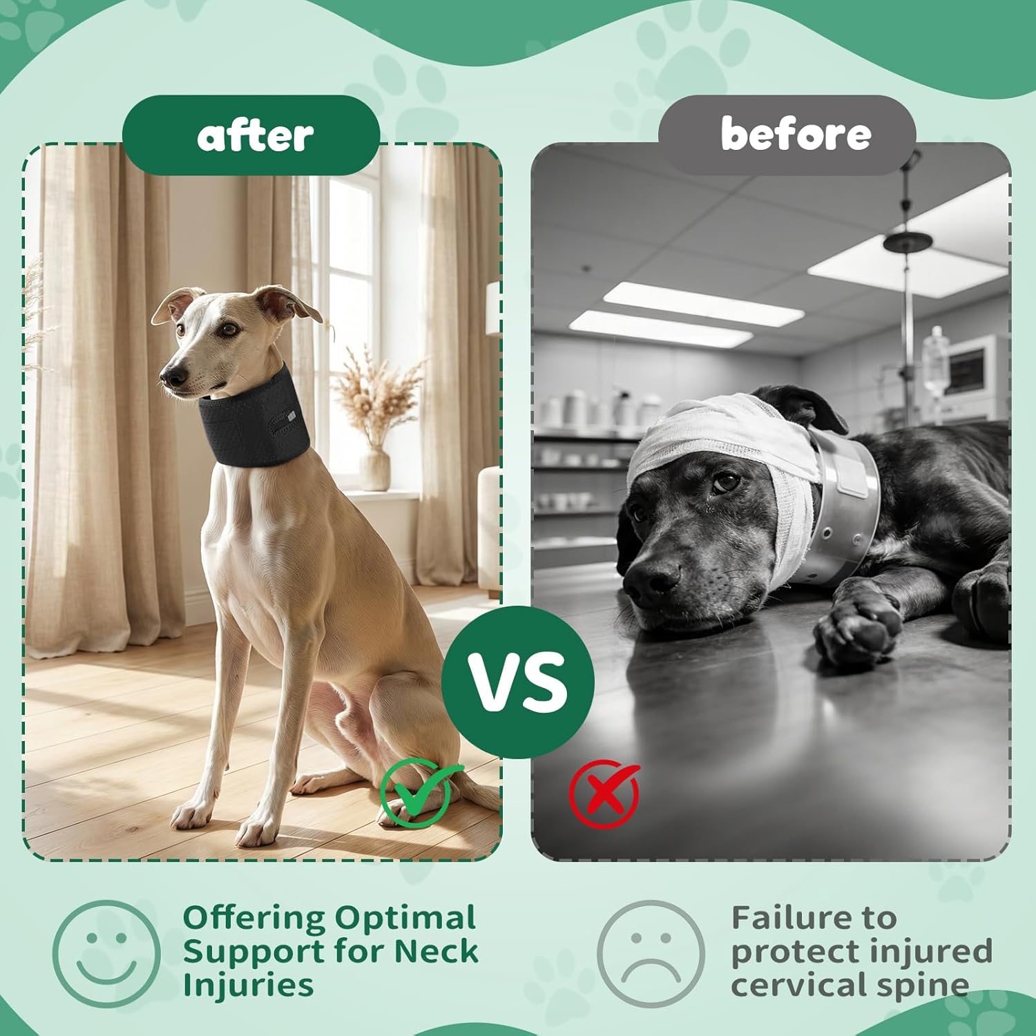 • ПРИЛОЖЕНИЕ: Тази опора за врата на кучето е подходяща за кучета с наранявания на врата, мускулна слабост и други. Нашийникът за кучета осигурява важна следоперативна или свързана с нараняване опора за врата, минимизира риска от по-нататъшни наранявания и насърчава възстановяването.
