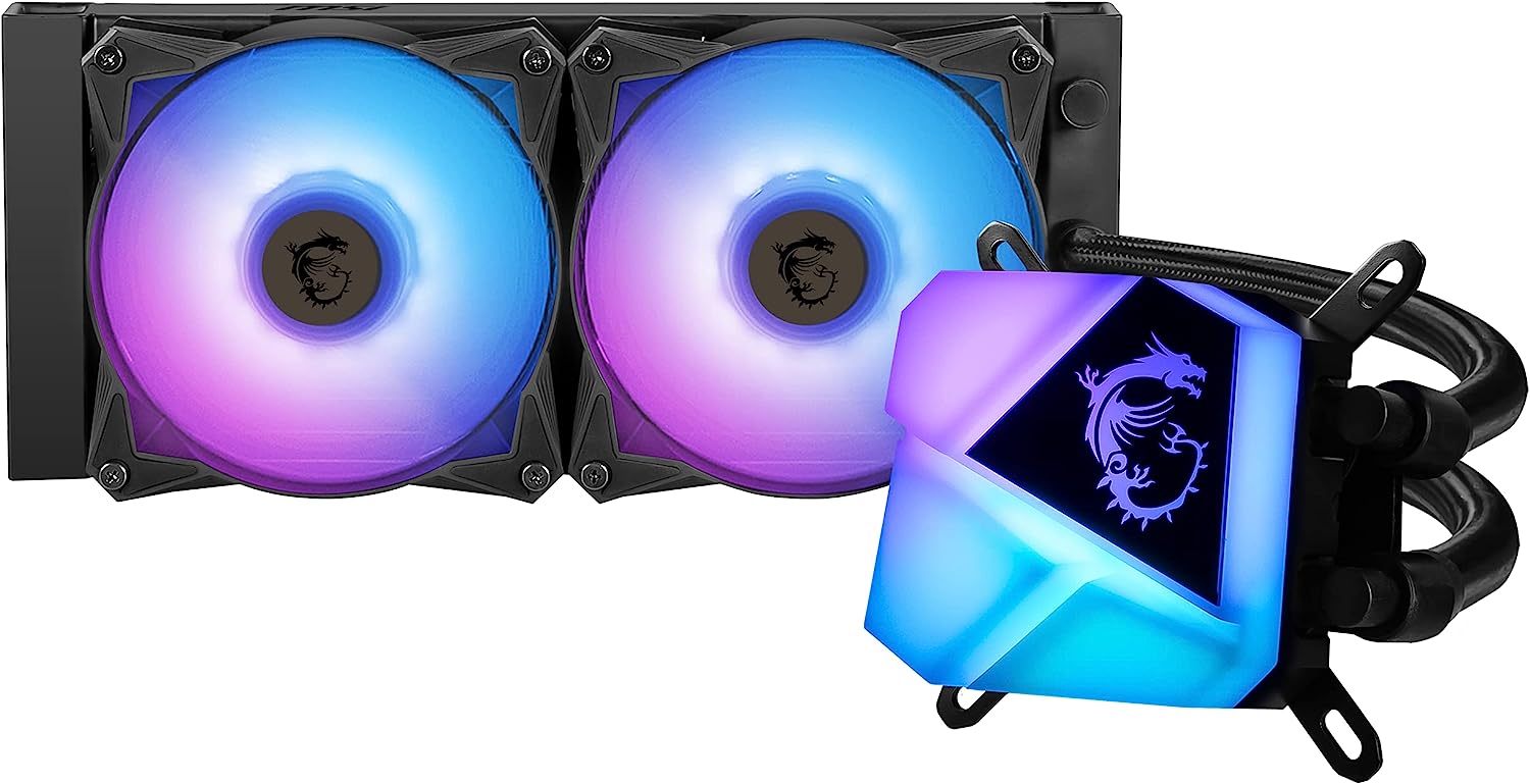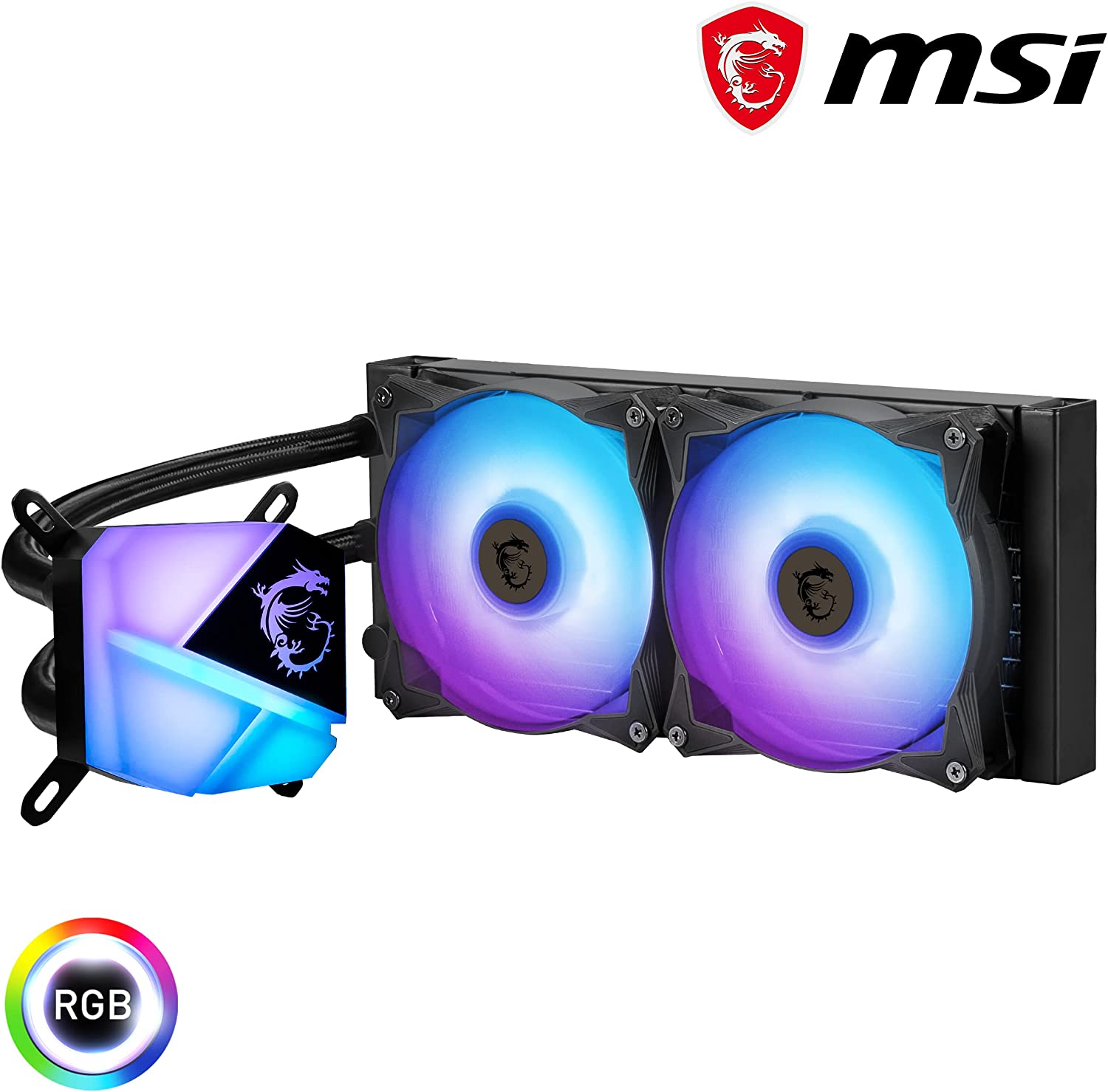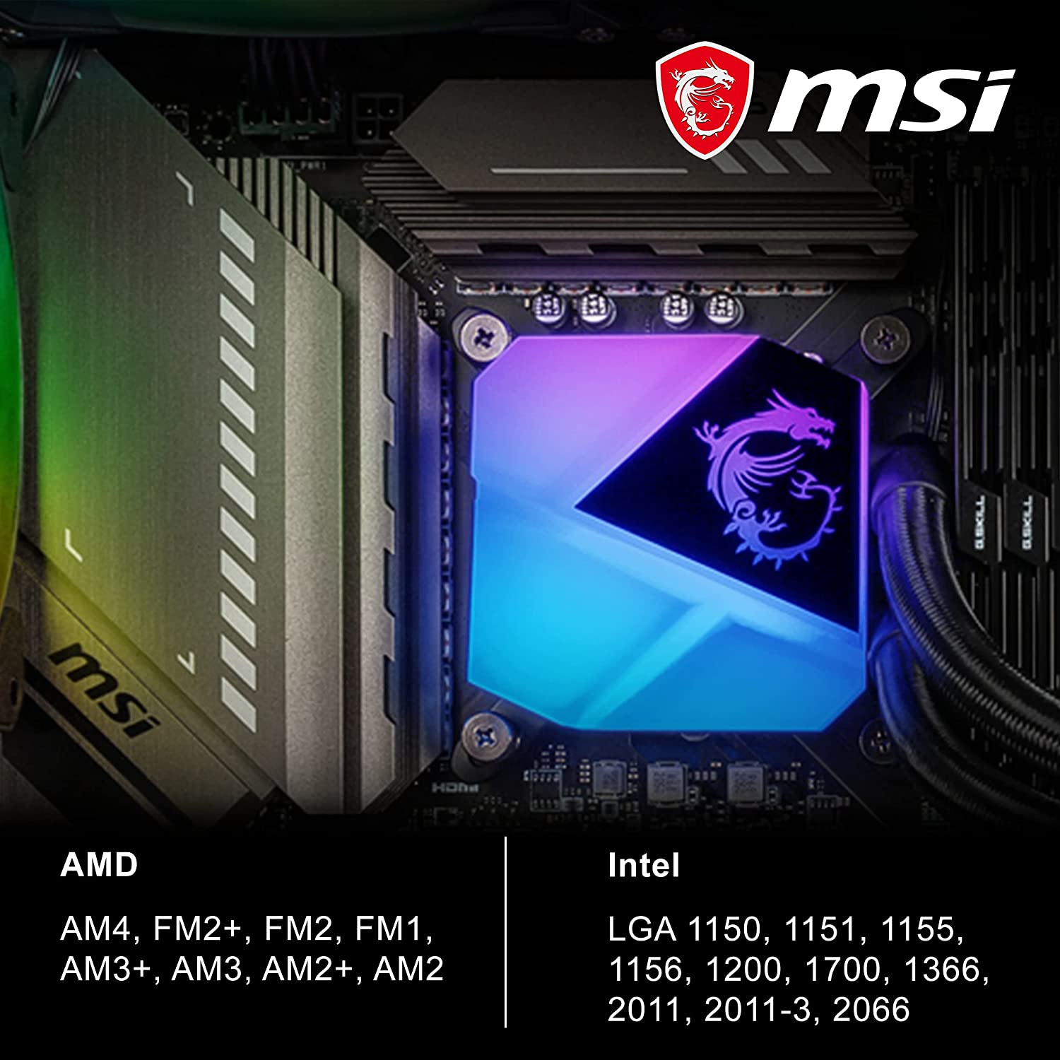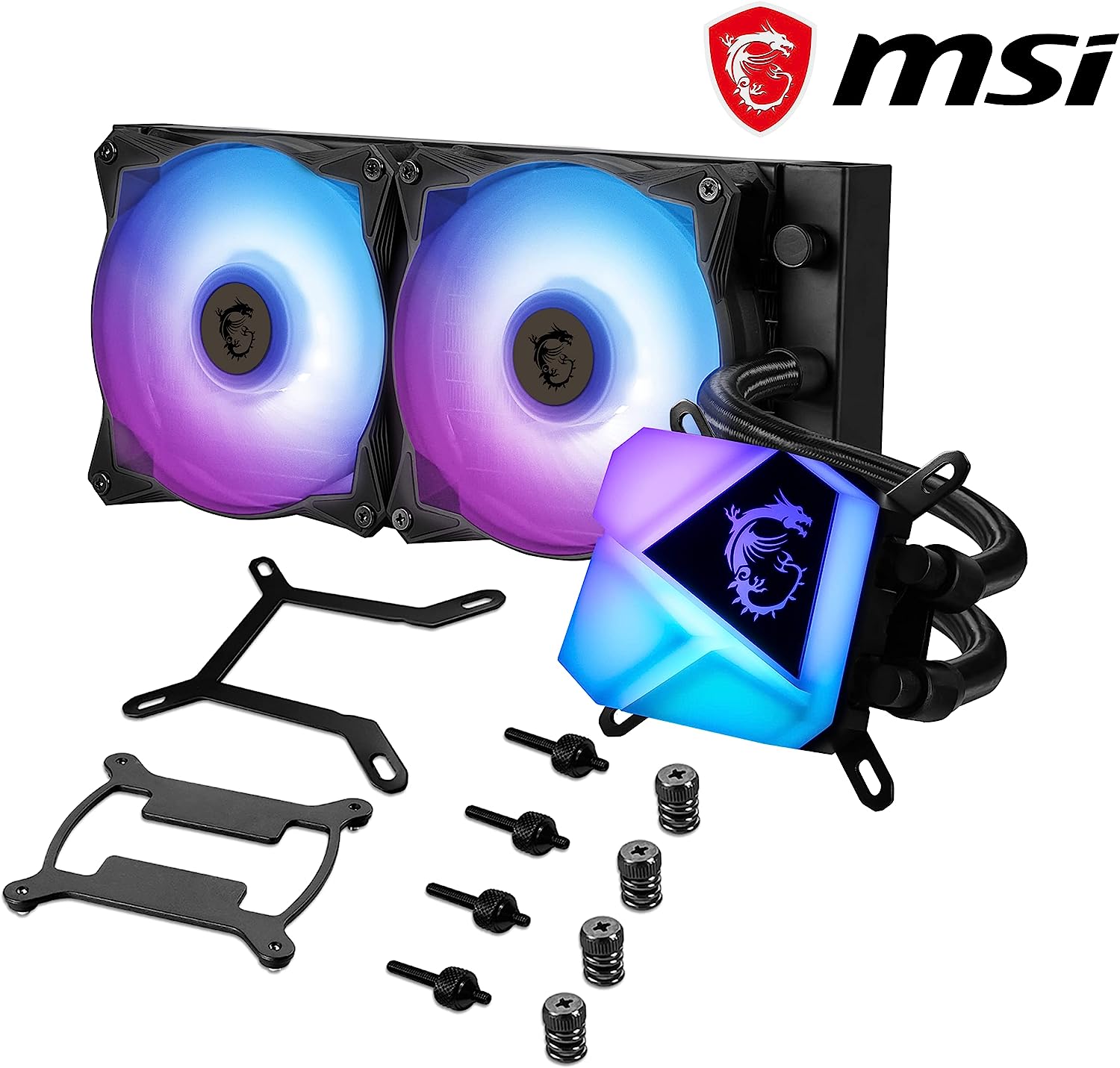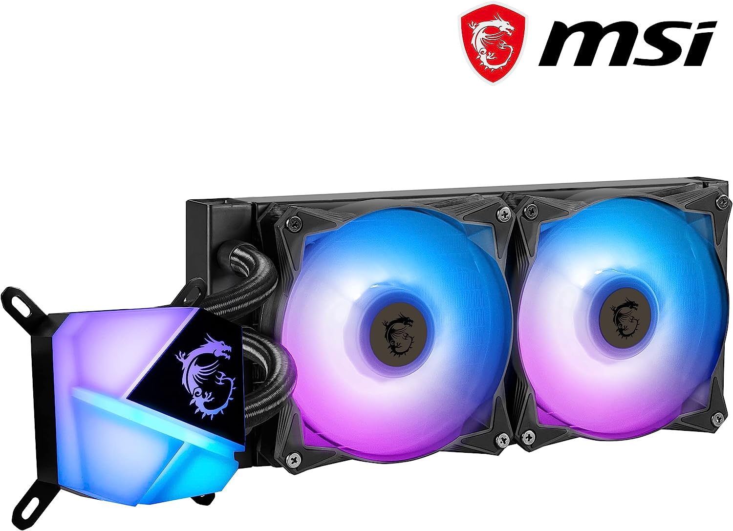 • Разполага с призматичен ARGB воден блок с лого на MSI и RGB вентилатор за различни светлинни ефекти, които могат да се контролират със софтуер Mystic Light (изисква 5V 3-Pin ARGB конектор на дънната платка)