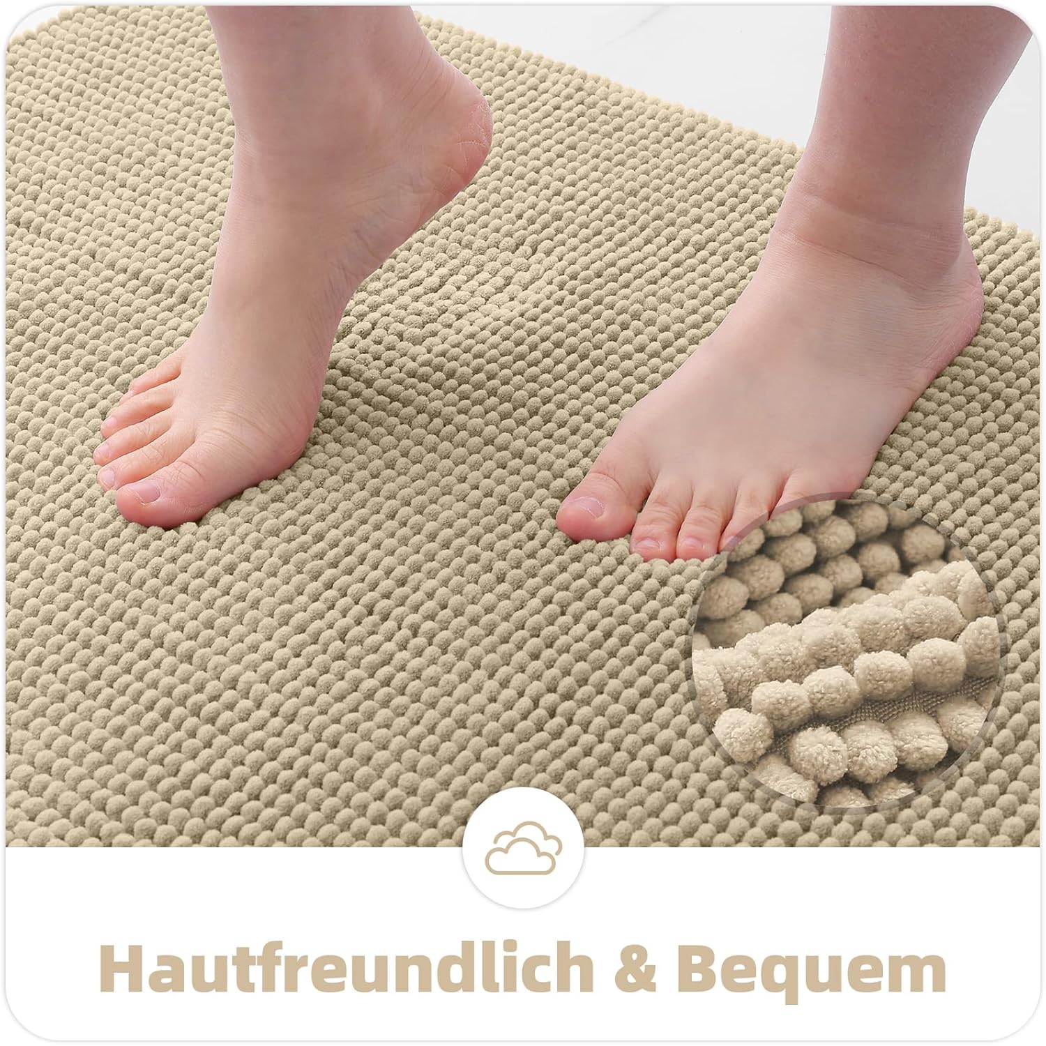 OLANLY Шенилна постелка за баня, 40 x 60 см, Изключително мека неплъзгаща се постелка за баня, Супер абсорбираща пухкава постелка за баня за под в банята, Постелка за крака, която може да се пере в пералня, Бежова