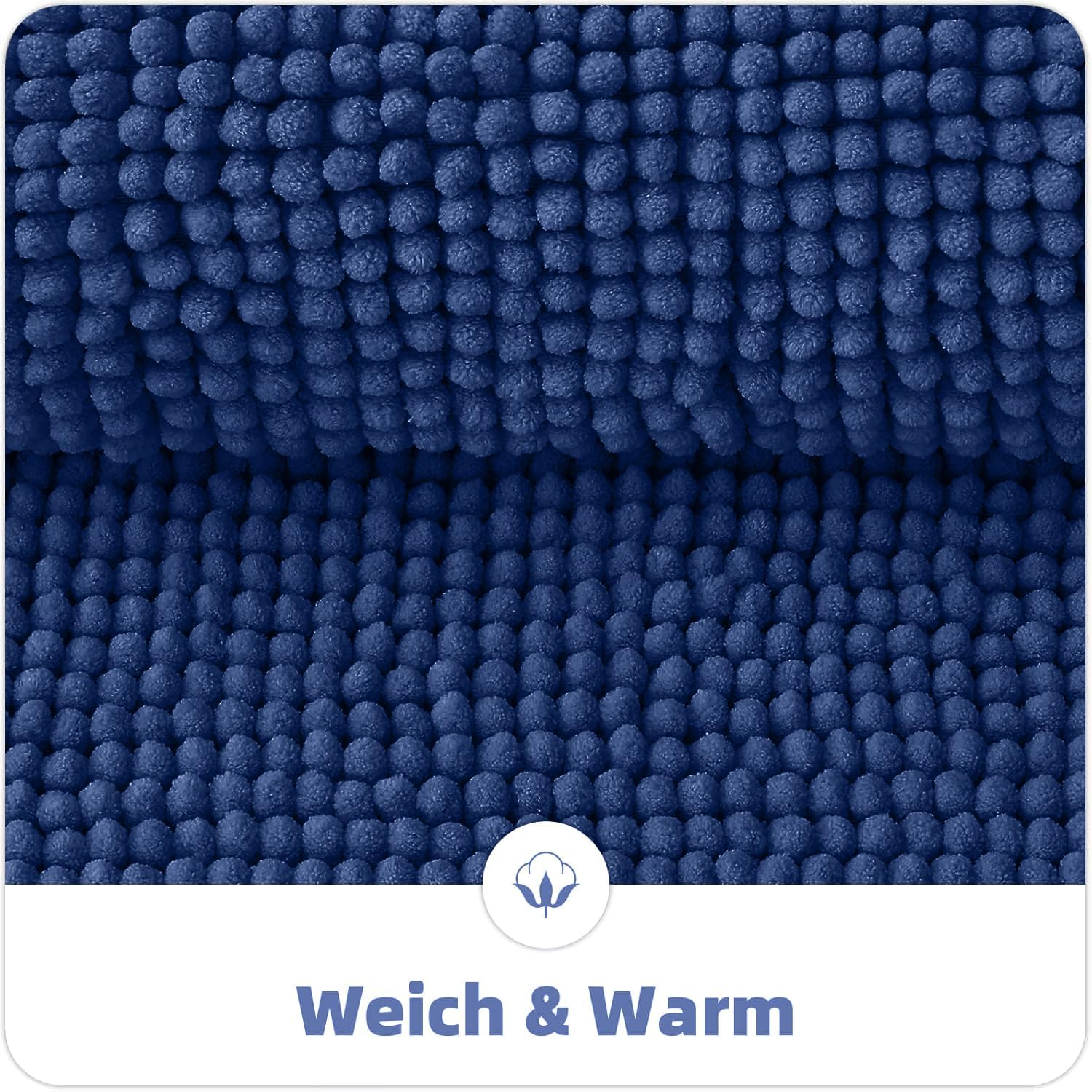 OLANLY Шенилна постелка за баня, 50 x 80 см, Изключително мека неплъзгаща се постелка за баня, Супер абсорбираща пухкава постелка за баня за под в банята, Постелка за крака за килим за баня, която може да се пере в пералня, Тъмносиня