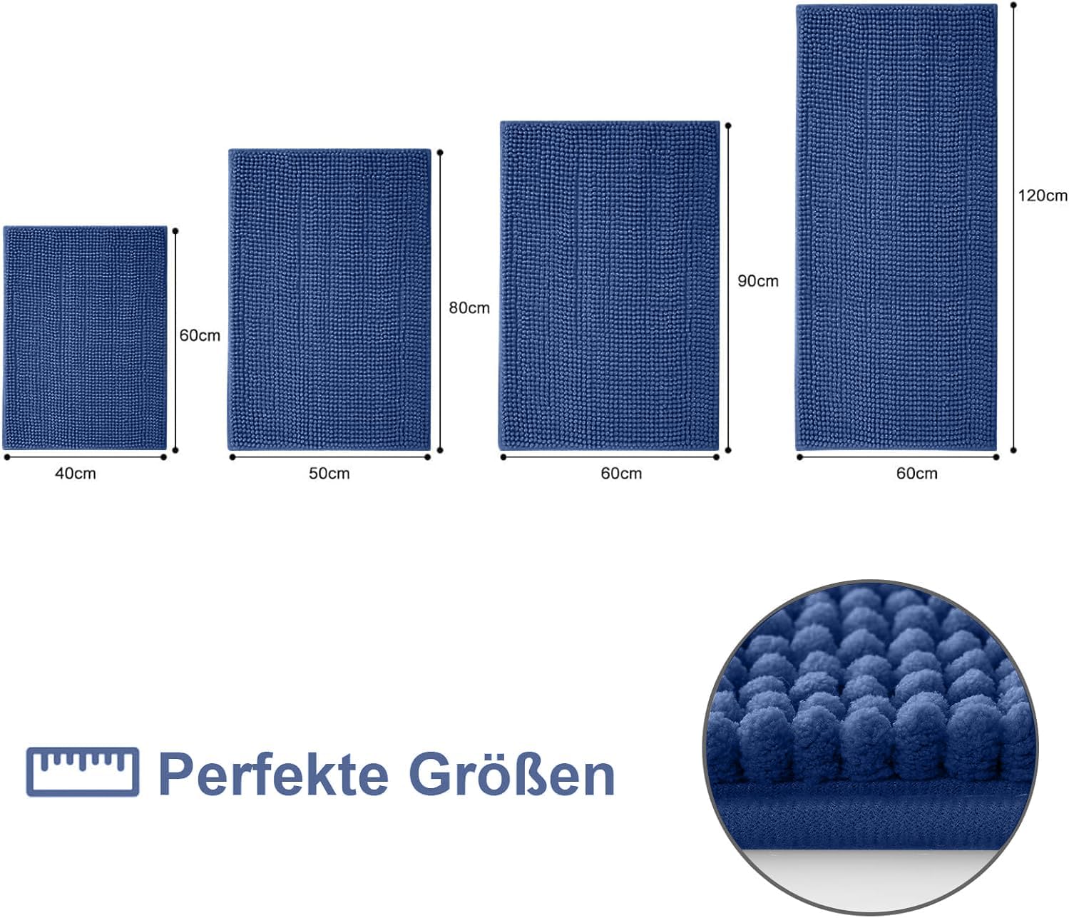 OLANLY Шенилна постелка за баня, 60 x 90 см, Изключително мека неплъзгаща се постелка за баня, Супер абсорбираща пухкава постелка за баня за под в банята, Постелка за крака за баня, която може да се пере в пералня, Тъмносиня
