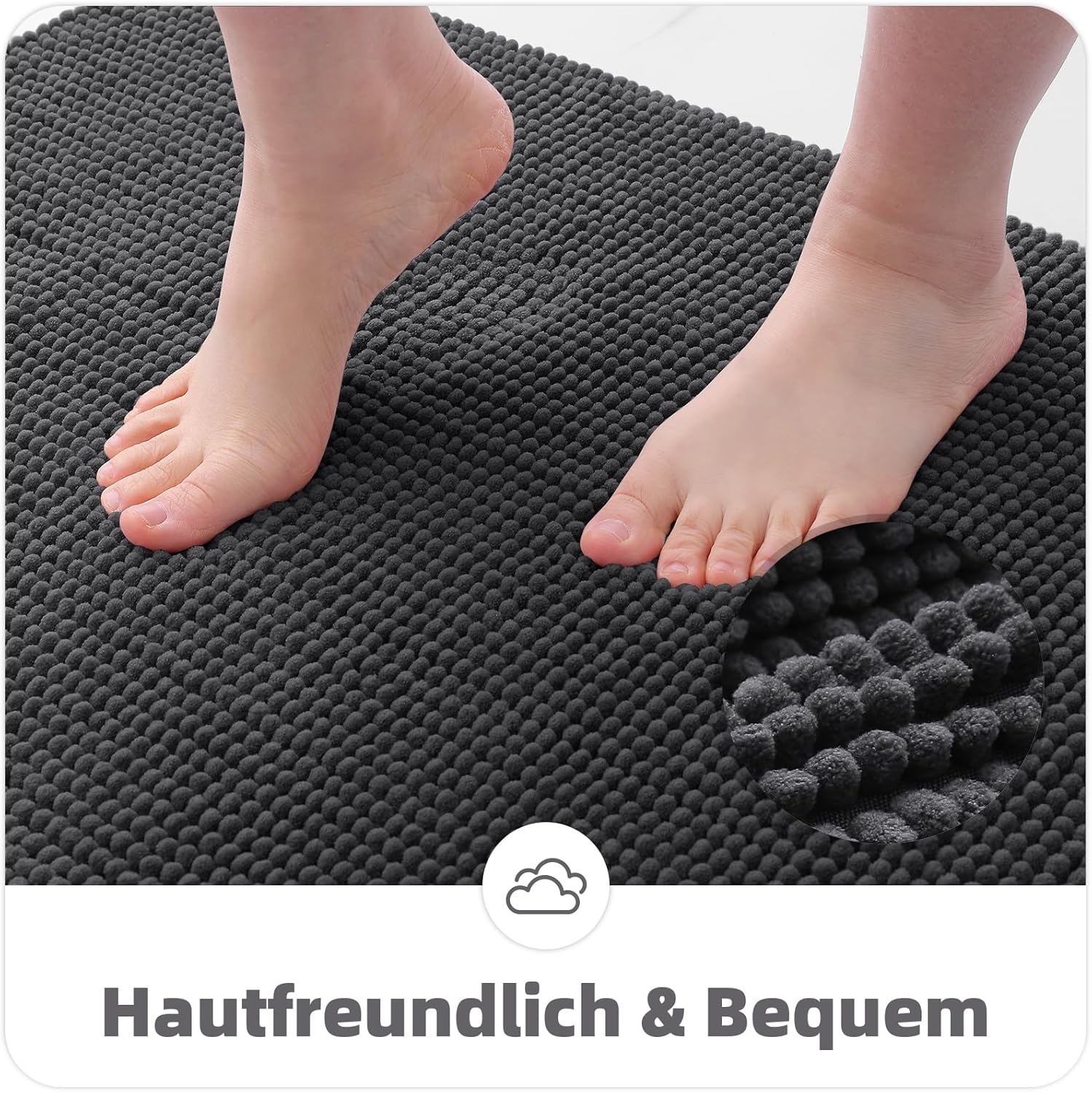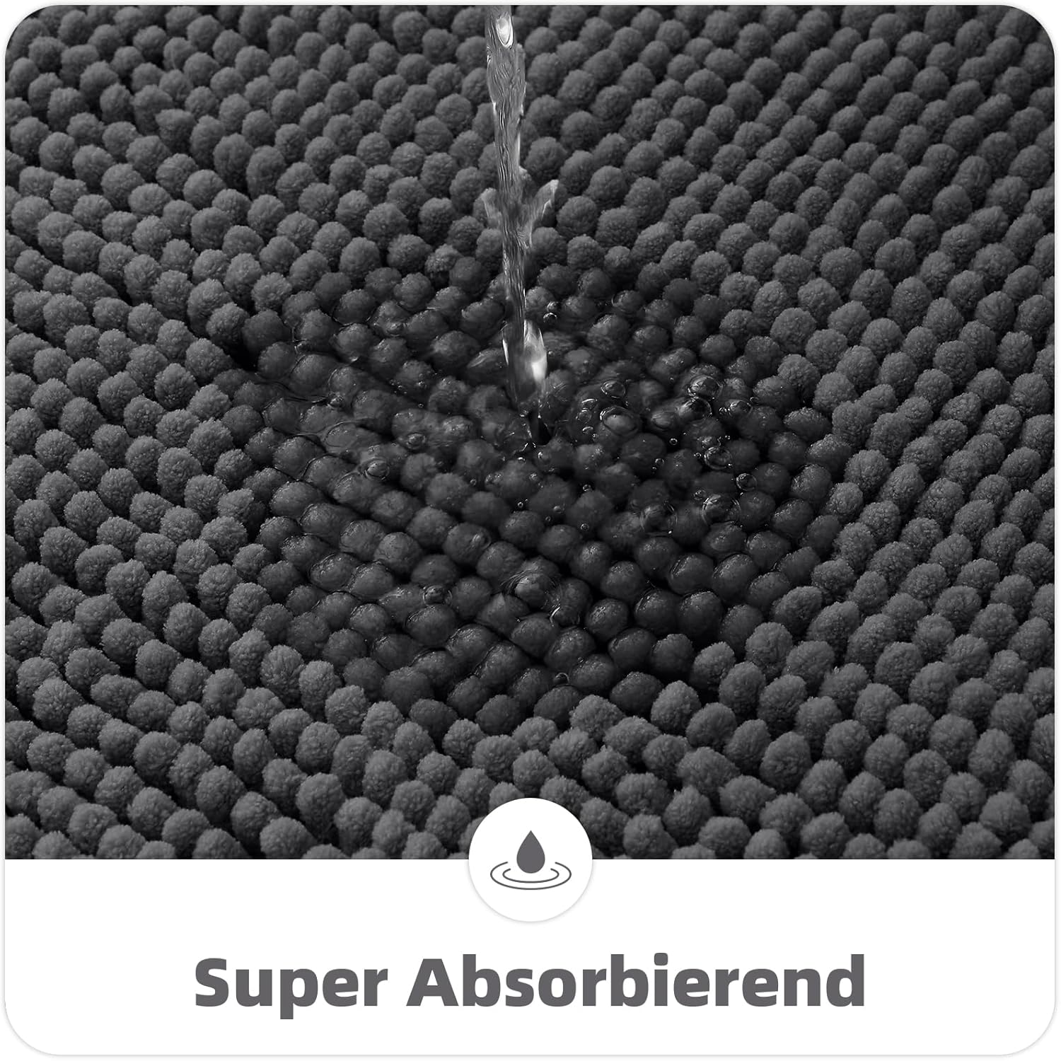 OLANLY Шенилна постелка за баня, 60 x 90 см, Изключително мека неплъзгаща се постелка за баня, Супер абсорбираща пухкава постелка за баня за под в банята, Постелка за крака за килим за баня, която може да се пере в пералня, Тъмносива