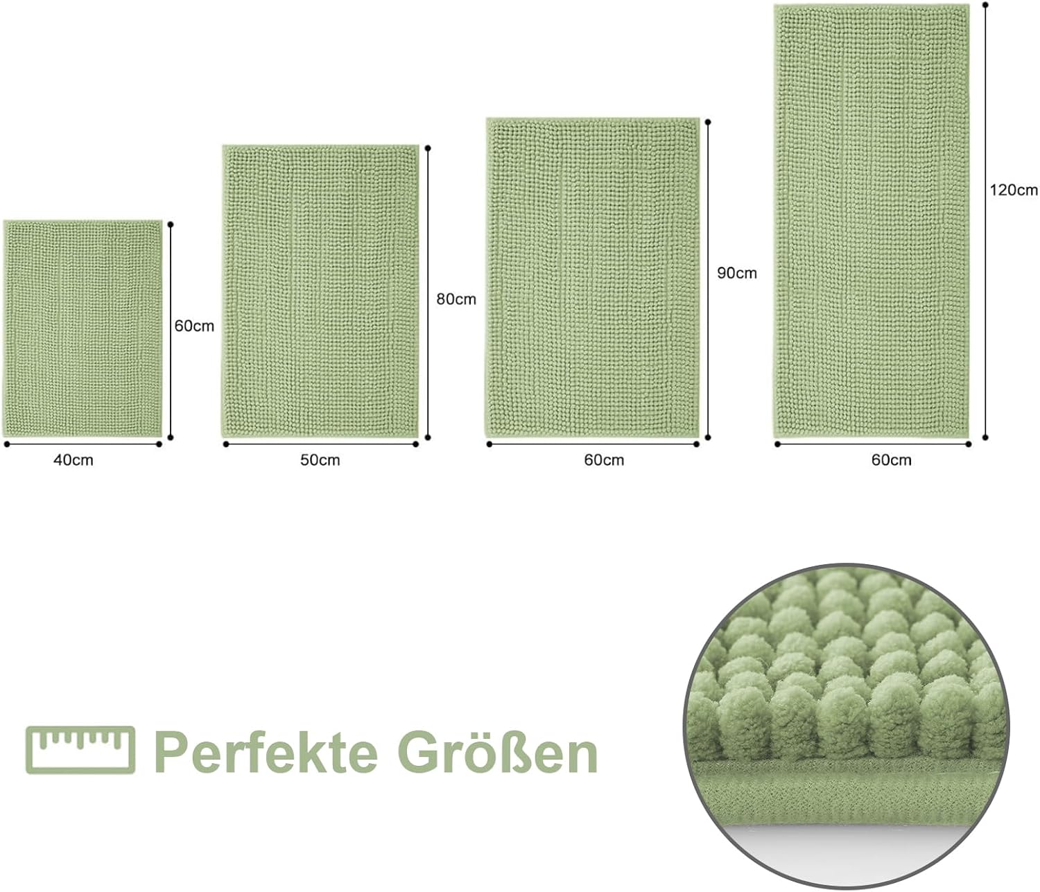 OLANLY Шенилна постелка за баня, Неплъзгащ се килим за баня, Мека постелка за баня, Абсорбираща постелка за баня, Переща се постелка за душ за баня, 50 x 80 см, Тревисто зелено