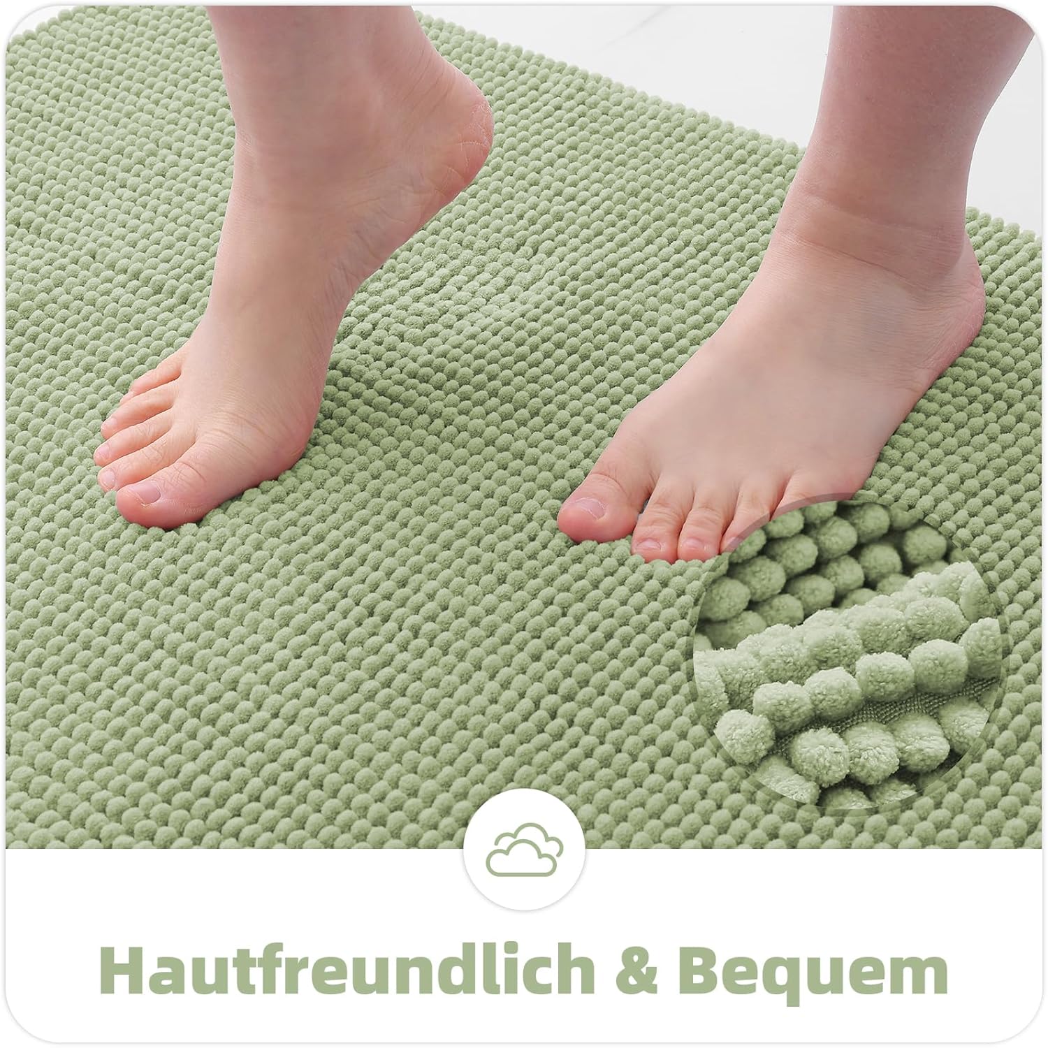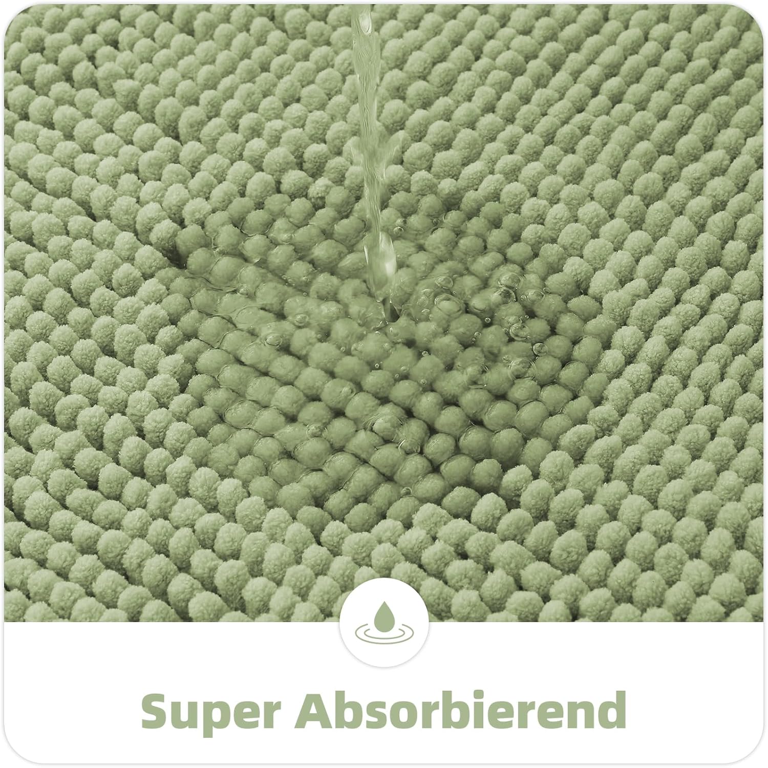 OLANLY Шенилна постелка за баня, Неплъзгащ се килим за баня, Мека постелка за баня, Абсорбираща постелка за баня, Переща се постелка за душ за баня, 60 x 90 см, Тревисто зелено