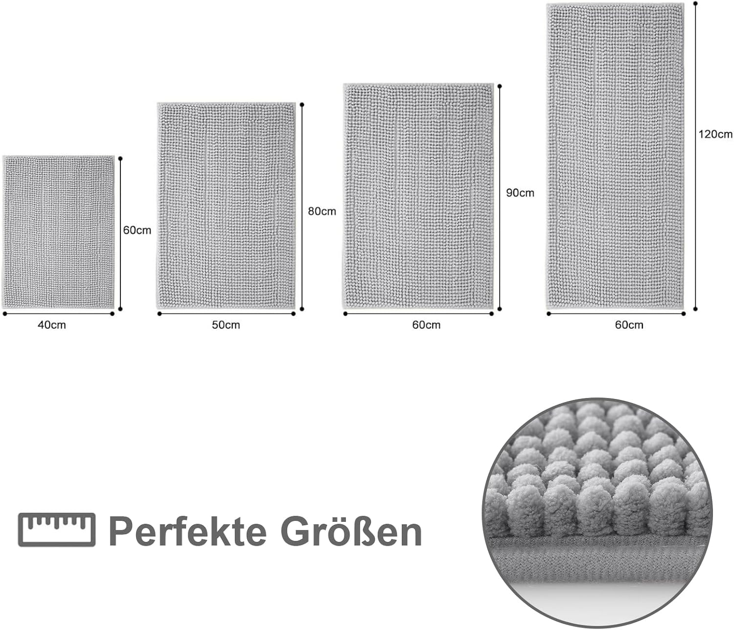 OLANLY Шенилна постелка за баня, Неплъзгащ се килим за баня, Мека постелка за баня, Абсорбираща постелка за баня, Переща се постелка за душ за баня, 70 x 150 см, Светло сиво