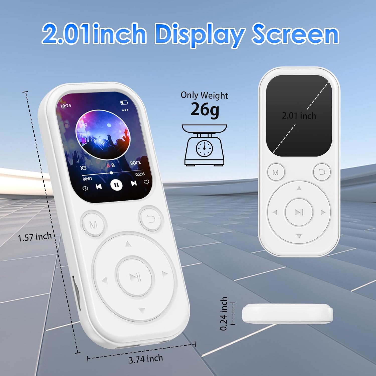 Olycism 64GB MP3 плейър с Bluetooth 5.3 преносим музикален плейър с HiFi качество на звука и FM радио Bluetooth MP3 плейър с капацитет на батерията 300mAh, подходящ за спорт, пътуване, ежедневие, бял