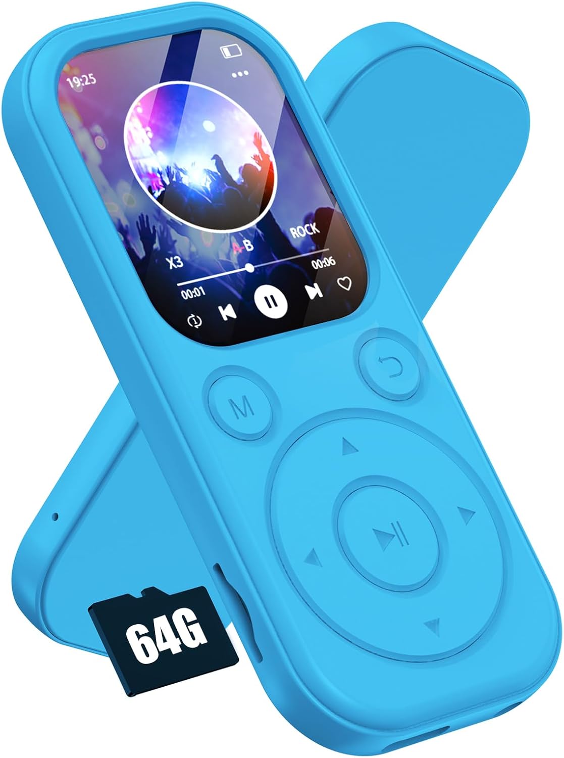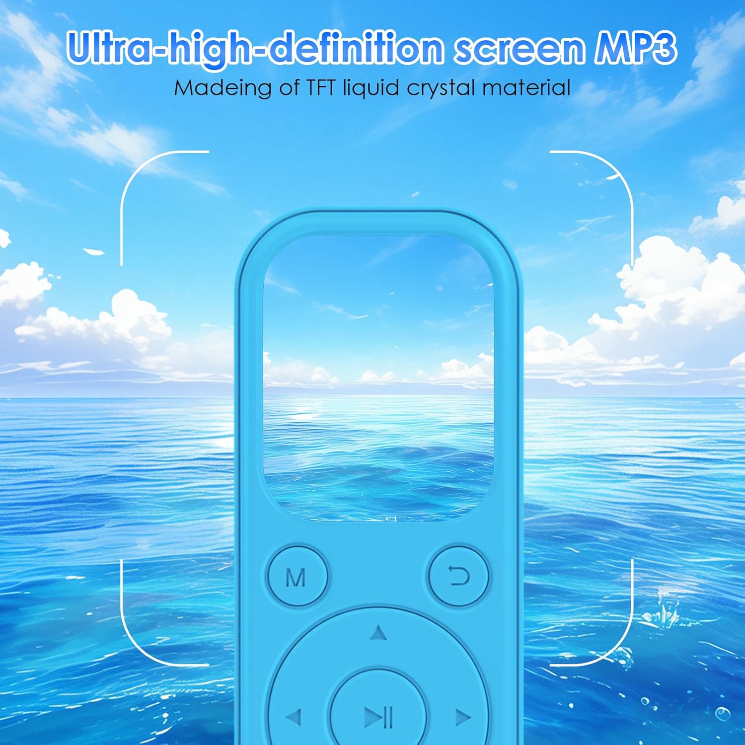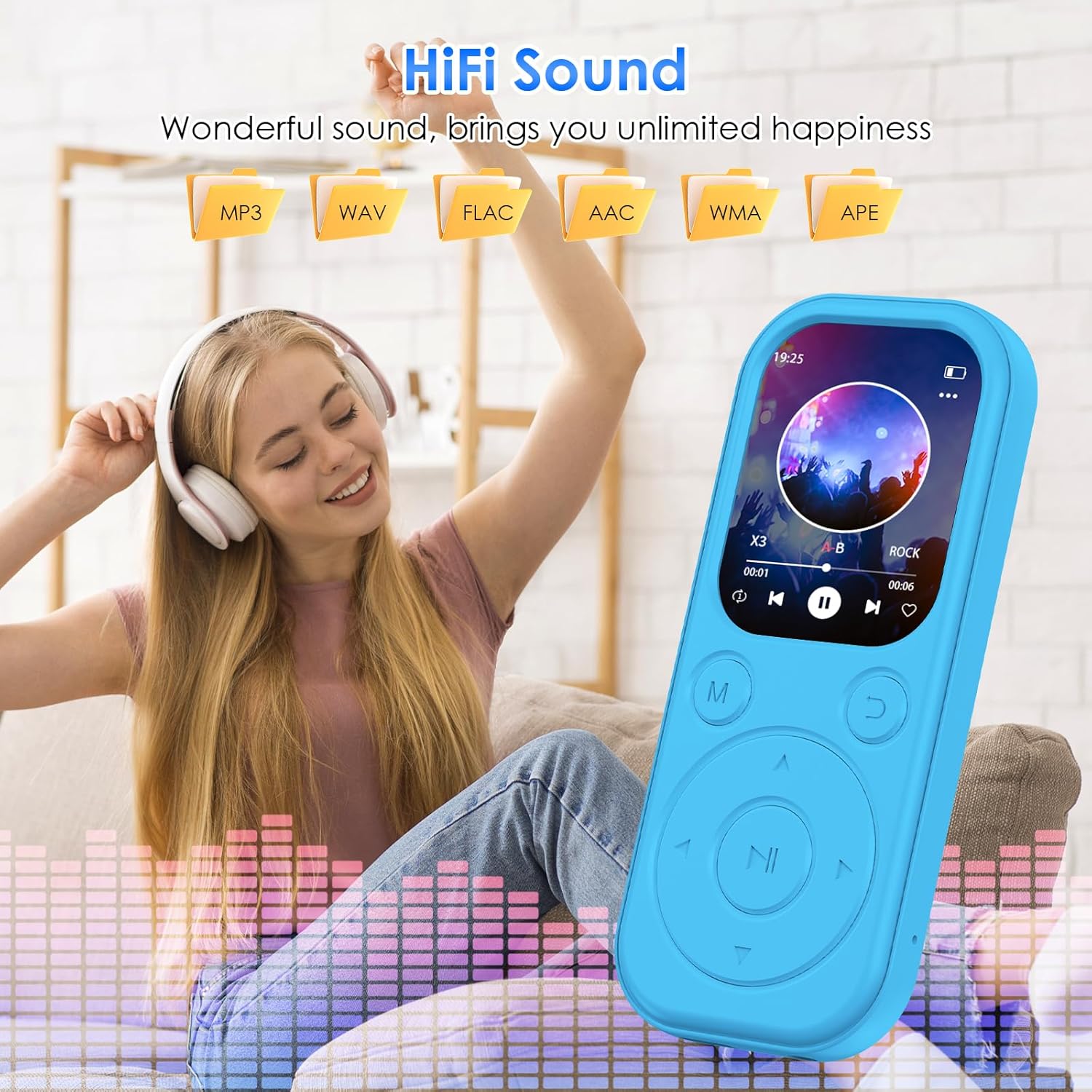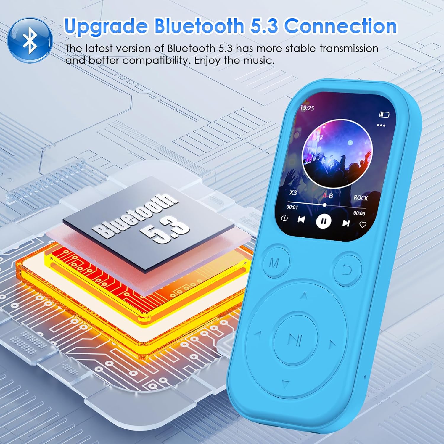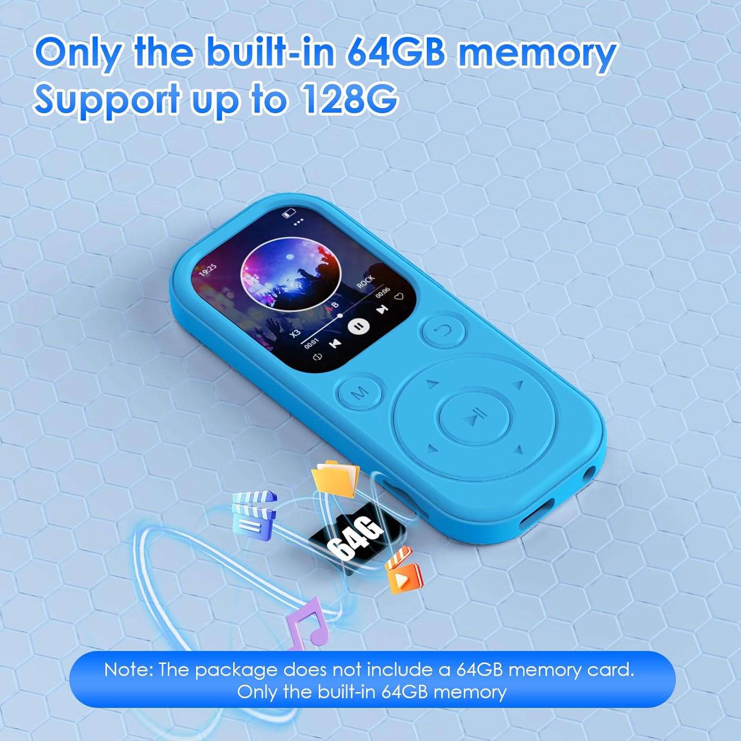 Olycism 64GB MP3 плейър с Bluetooth 5.3 преносим музикален плейър с HiFi качество на звука и FM радио Bluetooth MP3 плейър с капацитет на батерията 300mAh, подходящ за спорт, пътуване, ежедневие