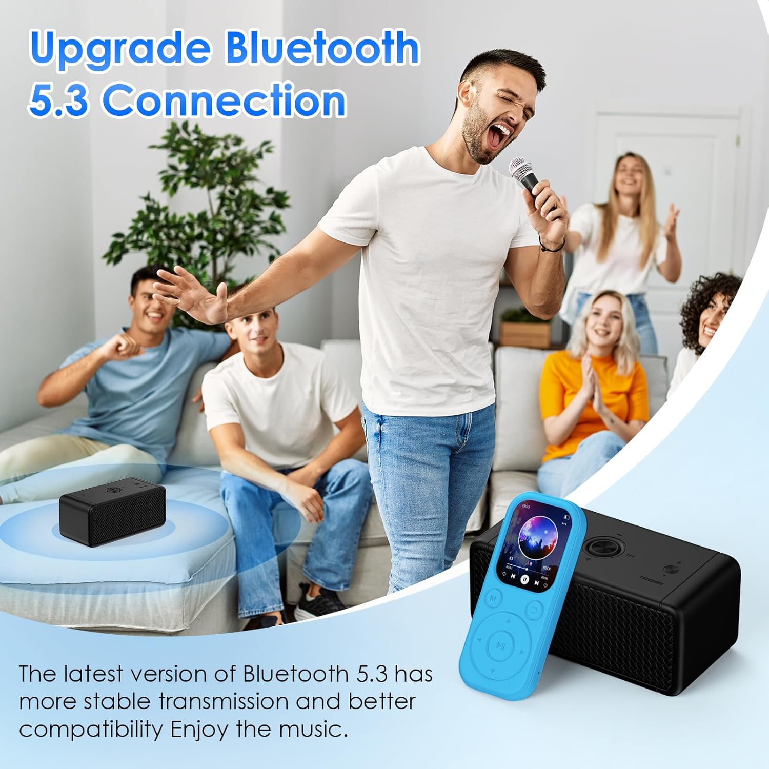 • Bluetooth 5.3: Бърз и стабилен с HiFi звук: безжична свобода благодарение на най-новата технология Bluetooth 5.3! Свържете MP3 плейъра с Bluetooth безпроблемно към слушалки или високоговорители. Идеален за джогинг, пътуване до работа или релакс с кристално чист звук без загуби. Дори потребители, далеч от технологиите, го използват без усилие – музикален плейър за цялото семейство!
