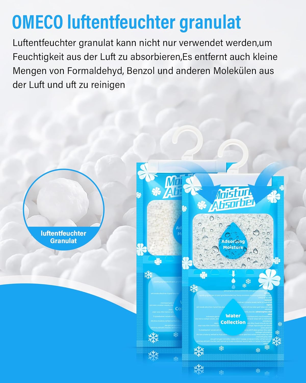 OMECO Висяща торба за обезвлажняване, влагоустойчива торба за еднократна употреба, 10 x 230 г гранули за обезвлажняване, подходяща за перално помещение, гардероб, библиотека и др., елиминира миризми