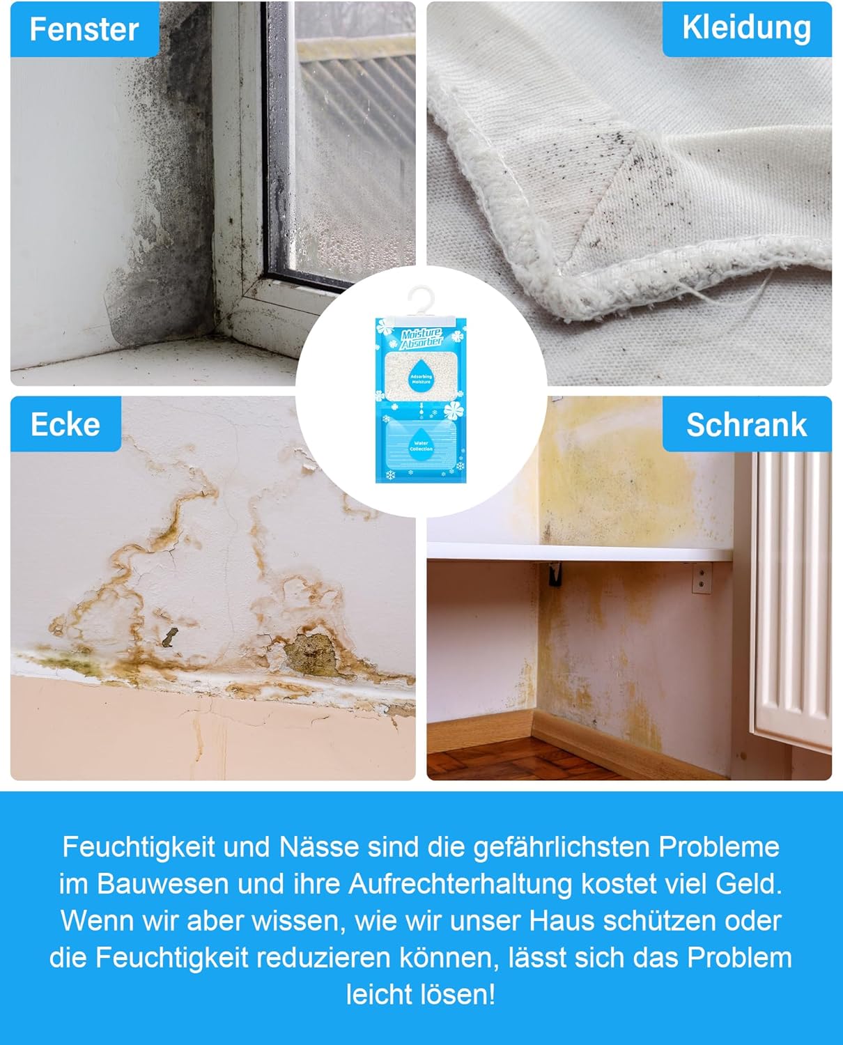 • Видим ефект: обезвлажнител без електричество, пълнене с торбичка, прозрачен дизайн, съхранение на влага в торбички, обезвлажнител за стенен монтаж в банята, лесно можете да видите ефекта от абсорбирането на влага, торбичка с гранули за обезвлажнител, максимално абсорбиране на 500 мл вода