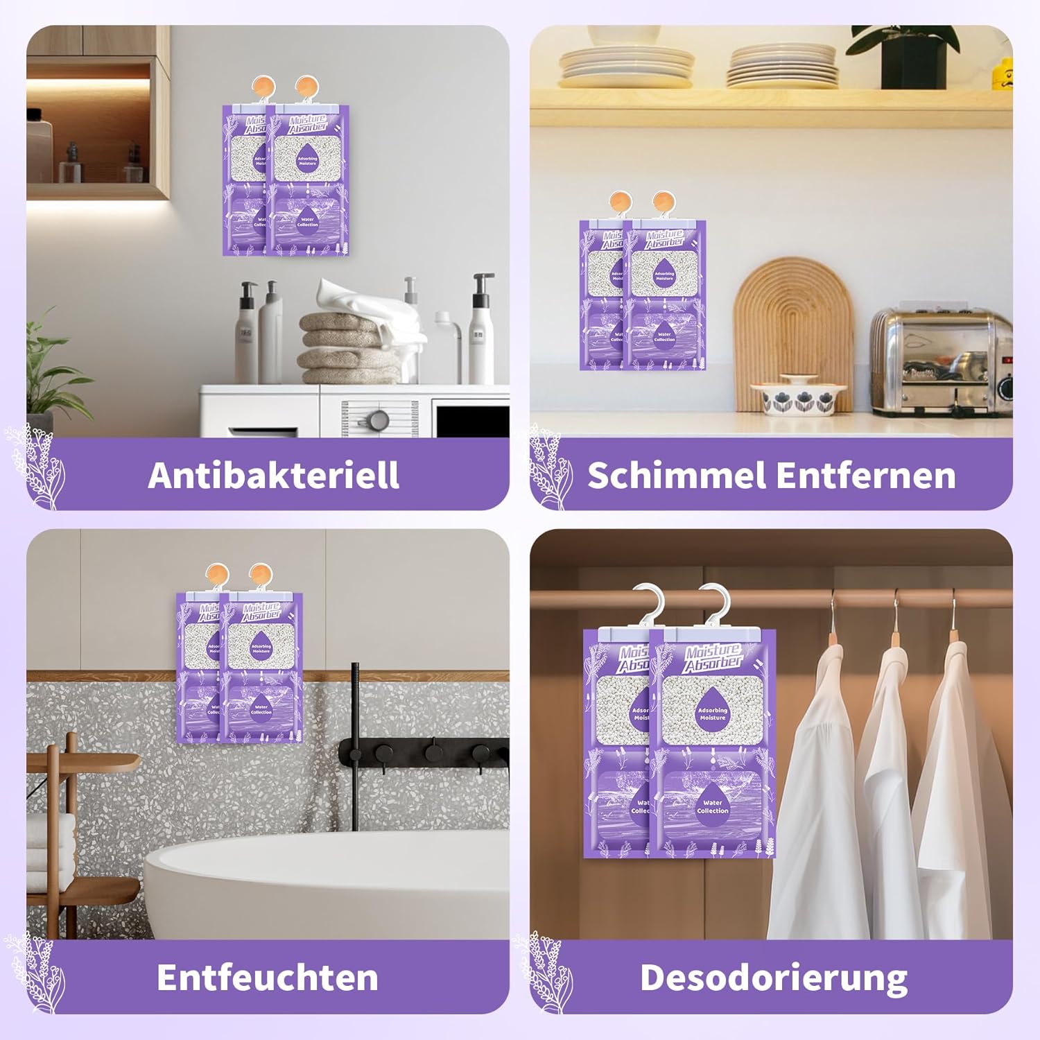 OMECO Висяща торба за обезвлажняване, влагоустойчива торба за еднократна употреба, 20 x 230 г гранули за обезвлажняване с аромат на лавандула, подходяща за перално помещение, гардероб, библиотека и др.