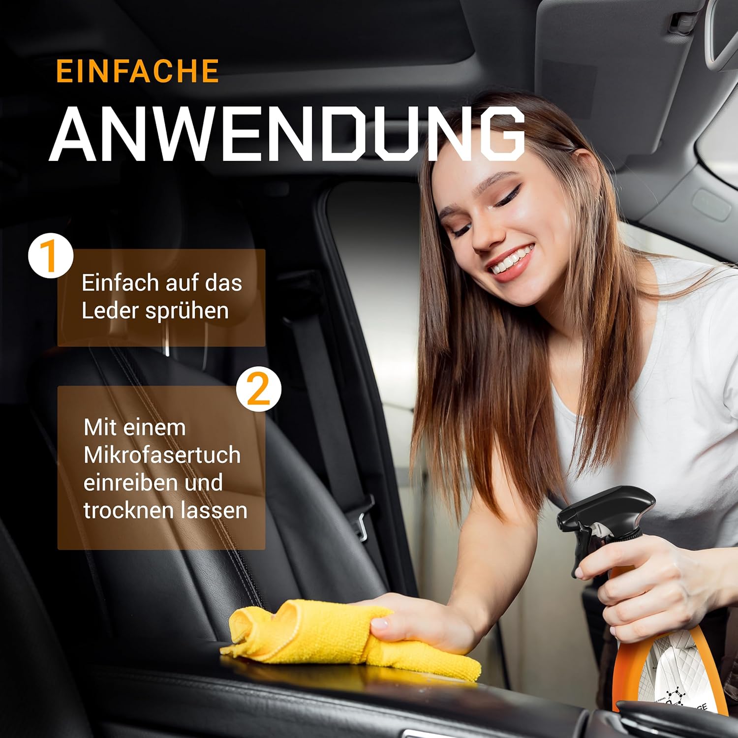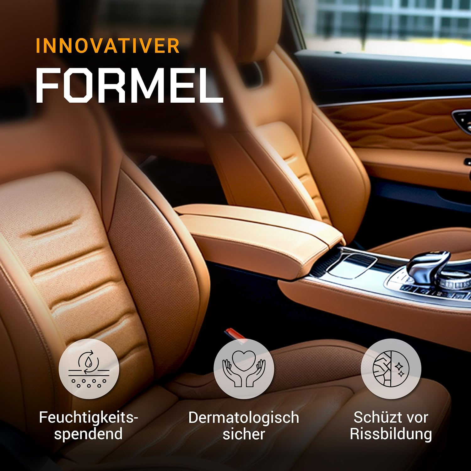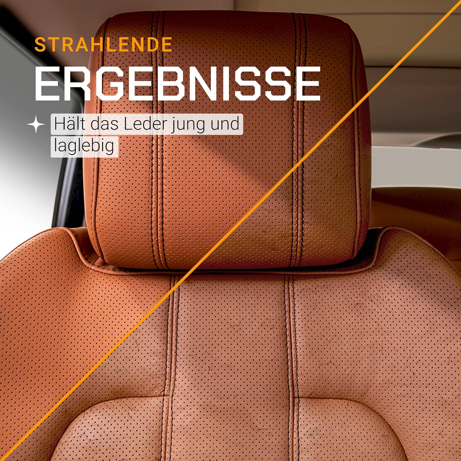 • Ефективна защита срещу UV лъчи за дълготрайна свежест на цвета: нашият балсам предпазва кожените седалки на автомобила от избледняване и изсушаване от UV лъчите. Той е идеален за грижа за кожени седалки в автомобила и гарантира, че вашата кожа - независимо дали е черна, кафява или бежова - винаги ще остане в най-добро състояние.