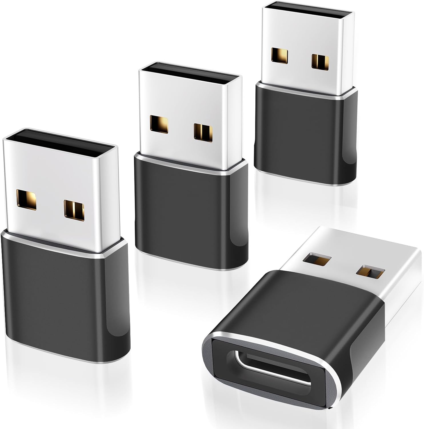 Omivine 4 броя USB-C женски към USB-A мъжки OTG адаптер, конвертор за кабел за зареждане в кола за iPhone, Mac, лаптоп, таблет, смартфон и др. – черен