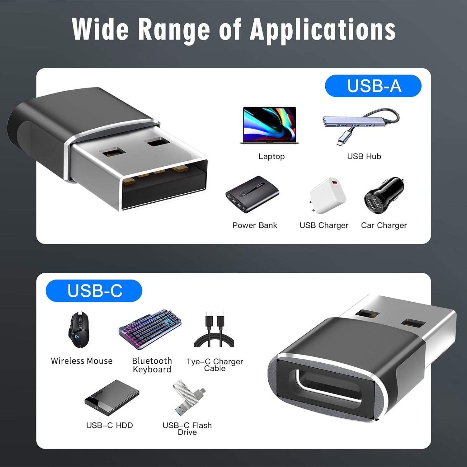 • Дизайн с връзка за ключодържател: 2-комплектният USB-C към USB-A адаптер е лек, заема малко място и се предлага с връзка, която предпазва от изгубване, така че можете безопасно да го съхранявате на ключодържателя, раницата, чантата или където пожелаете. За ежедневните си работни и житейски нужди, спестете място и ненужни разходи.