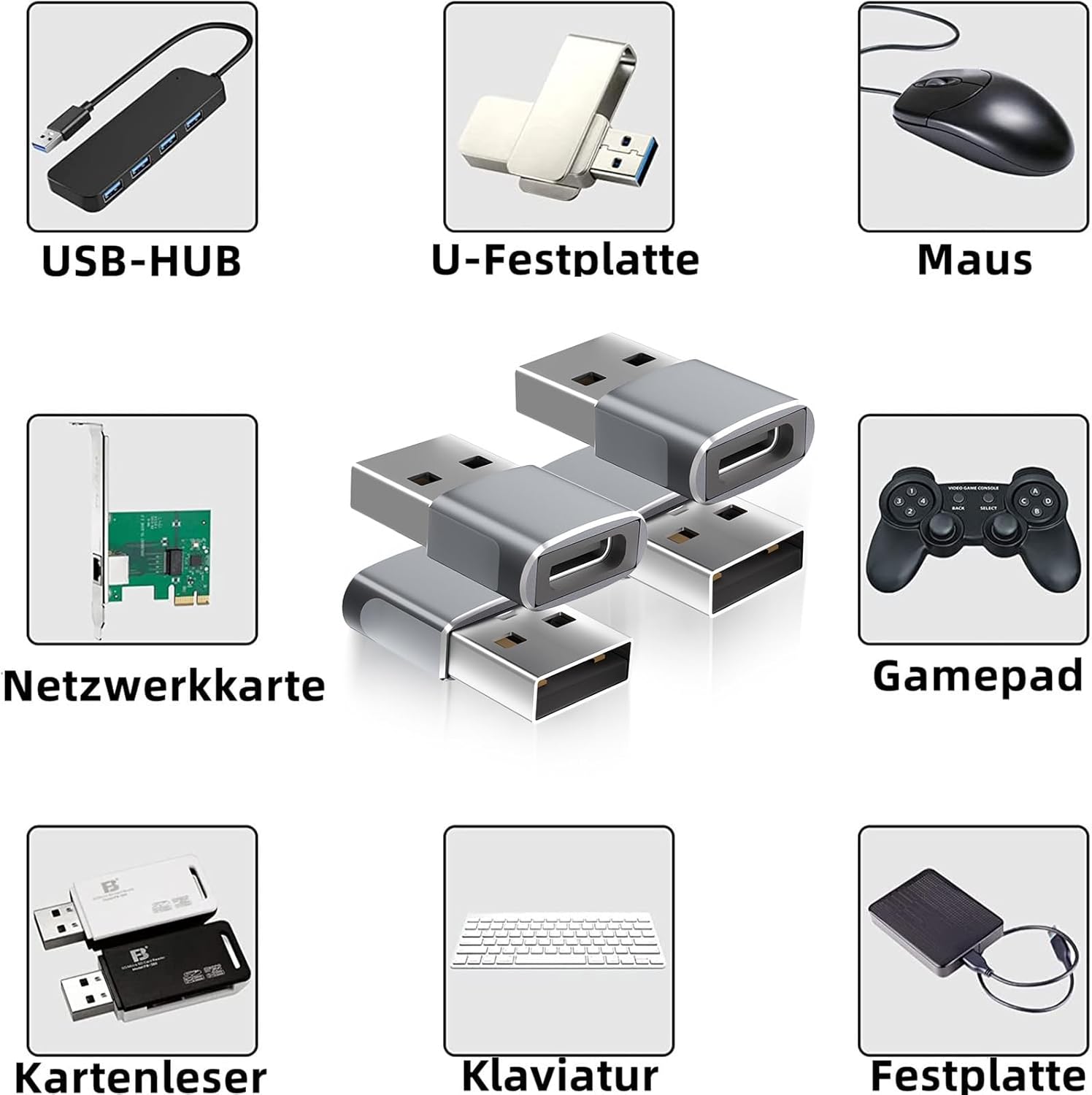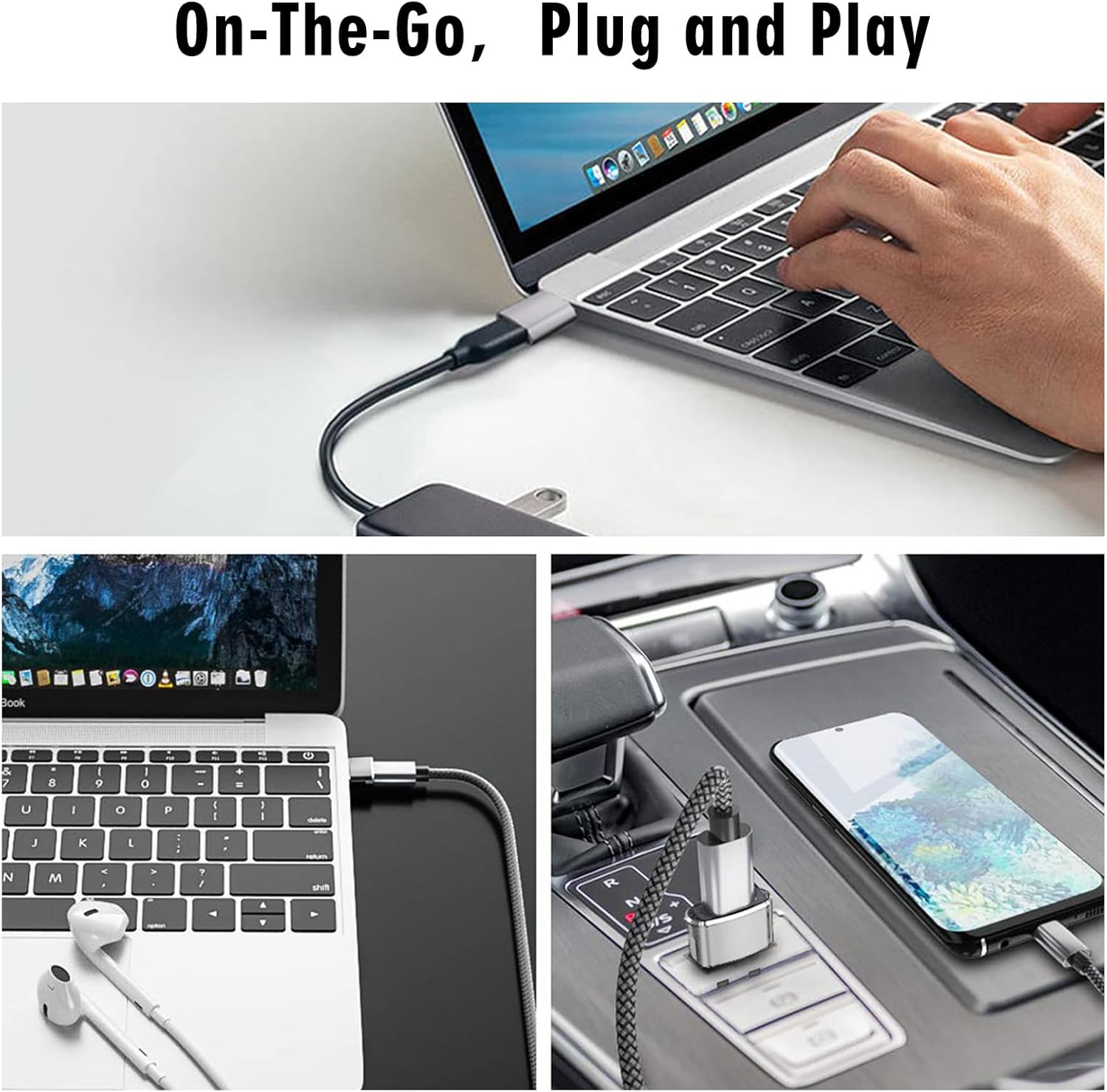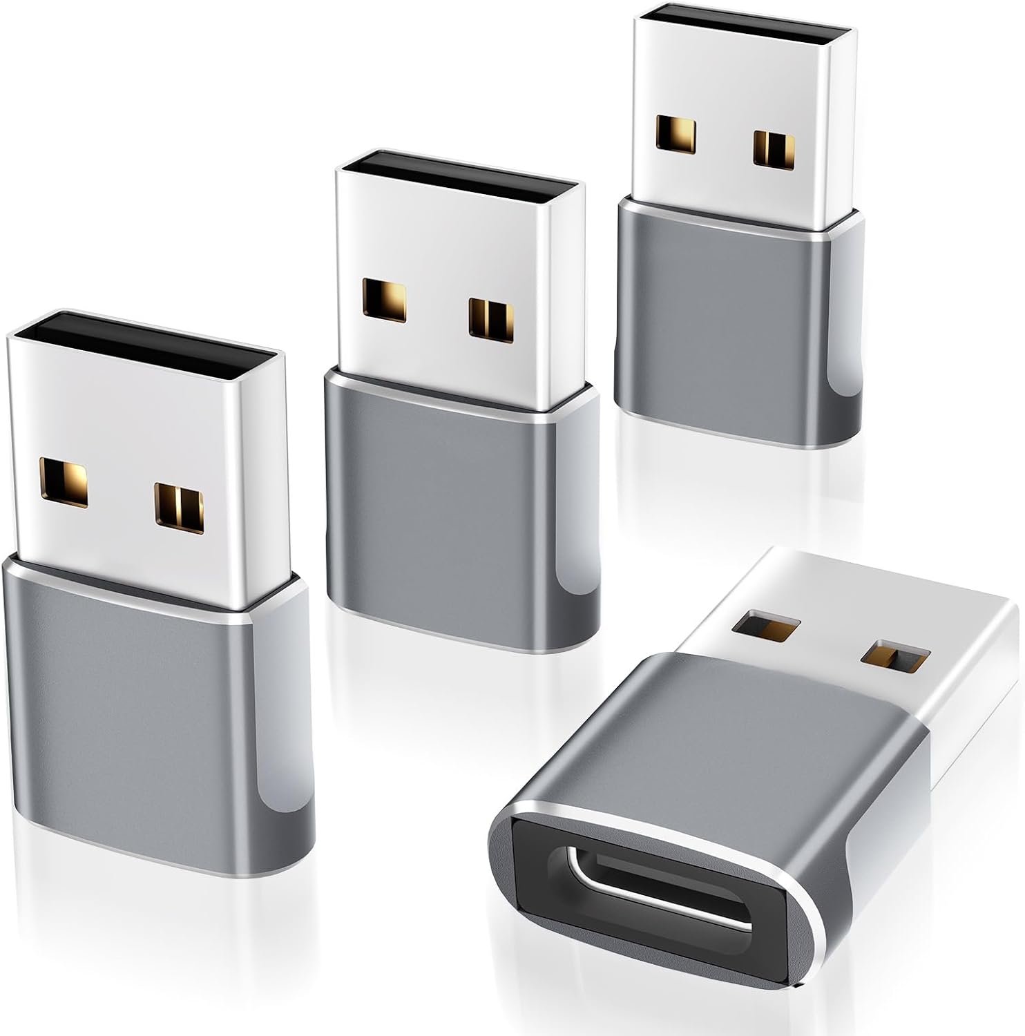 Omivine Комплект от 4 USB-C женски към USB-A мъжки OTG адаптера, конвертор за кабел за зареждане в кола за iPhone, Mac, лаптоп, таблет, смартфон и др., сребристосив