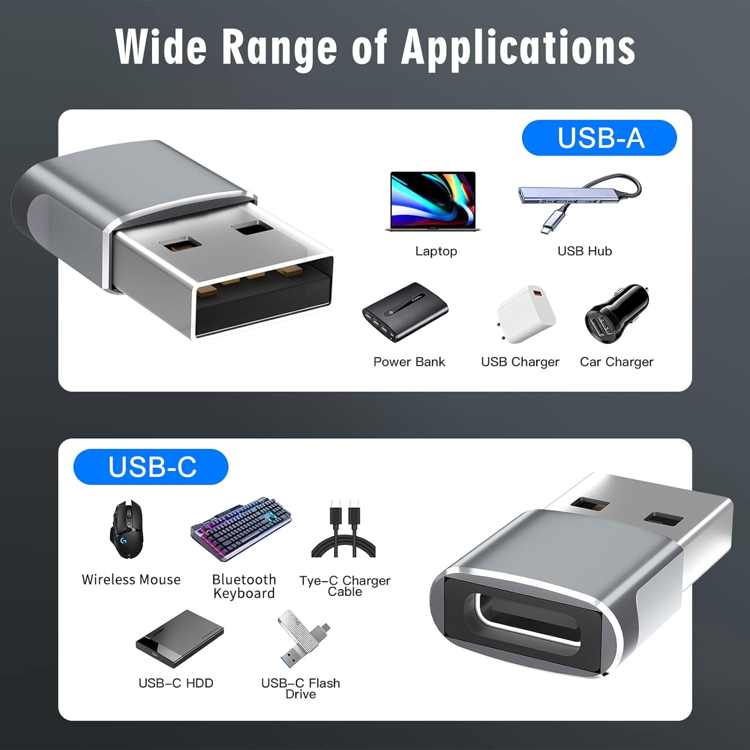 • Дизайн с връзка за ключодържател: 2-комплектният USB-C към USB-A адаптер е лек, заема малко място и се предлага с връзка, която предпазва от изгубване, така че можете безопасно да го съхранявате на ключодържателя, раницата, чантата или където пожелаете. За ежедневните си работни и житейски нужди, спестете място и ненужни разходи.