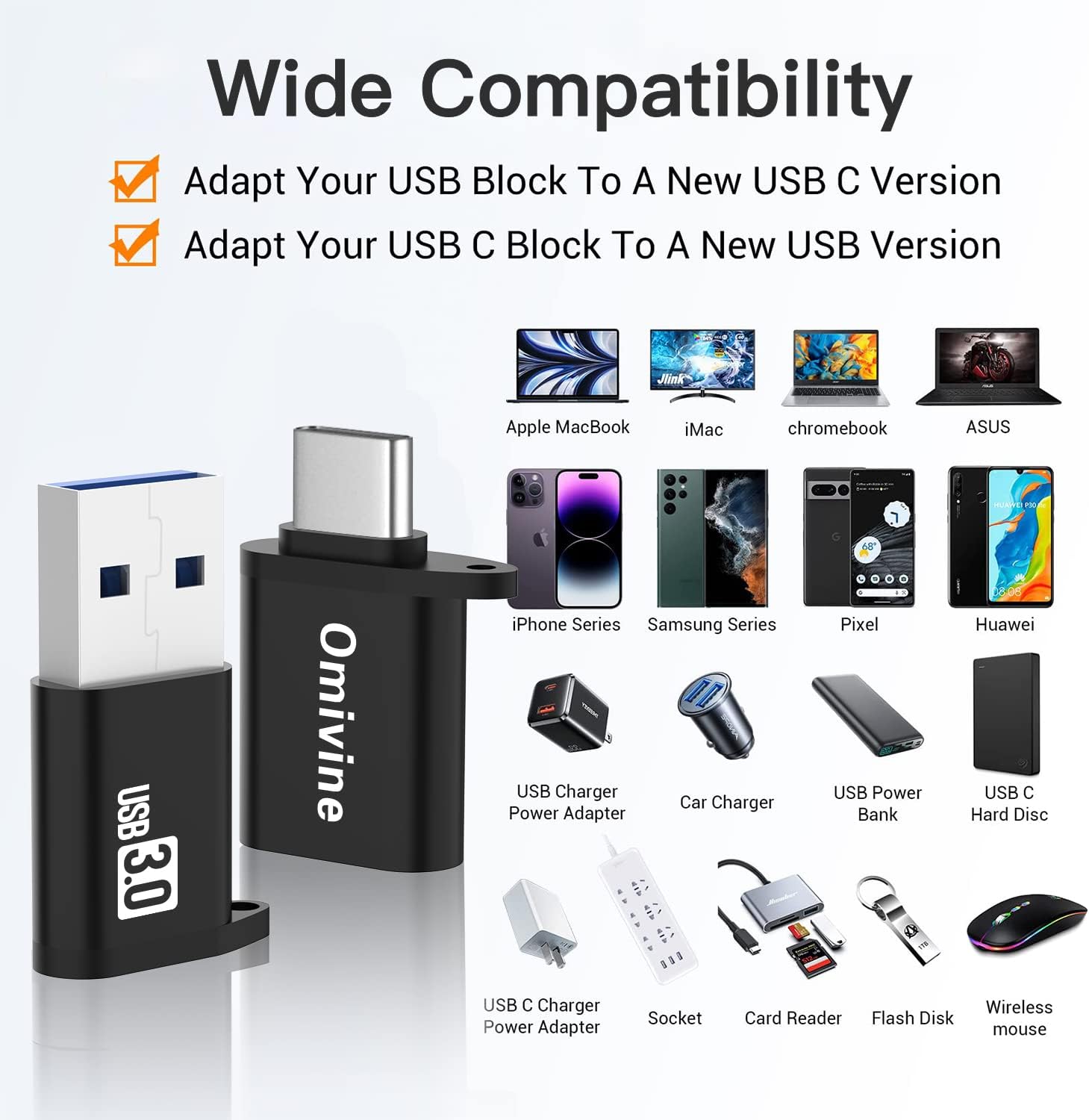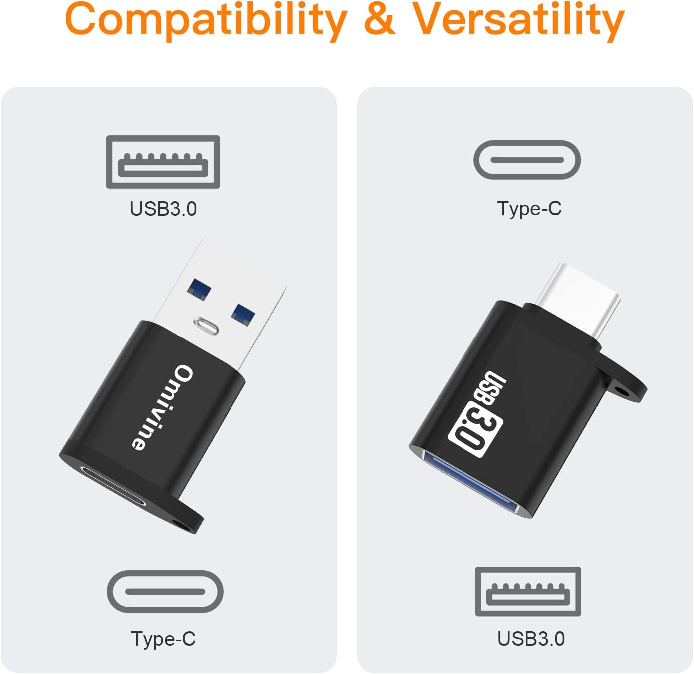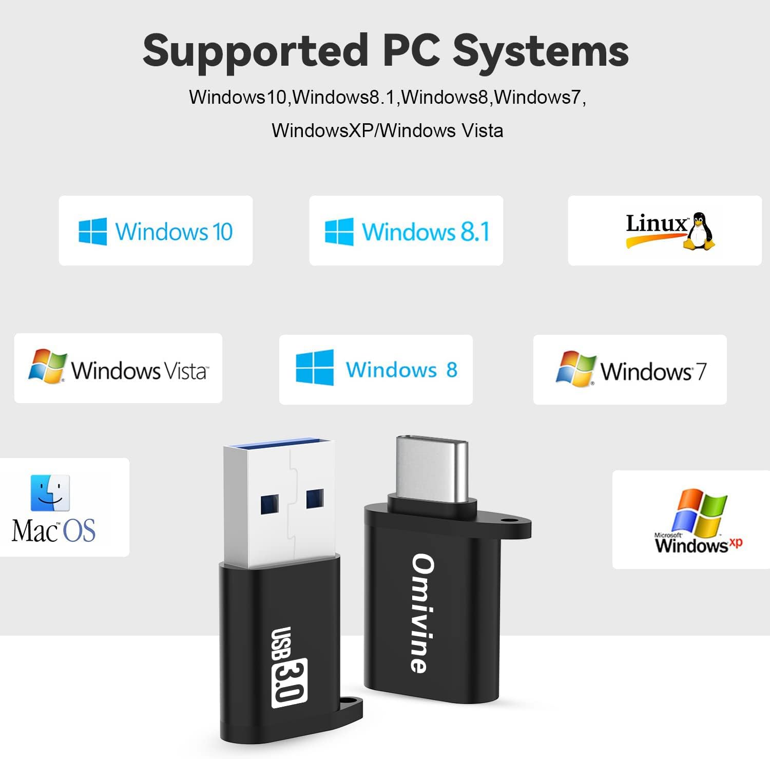 • USB 3.0 Супер скорост: Omivine USB-C към USB адаптер поддържа USB 3.0 и е обратно съвместим с USB 2.0 и USB 1.1 устройства. Високоскоростният трансфер на данни е 10 пъти по-бърз от USB 2.0 и ви позволява да прехвърляте 1GB файлове и филми за секунди.