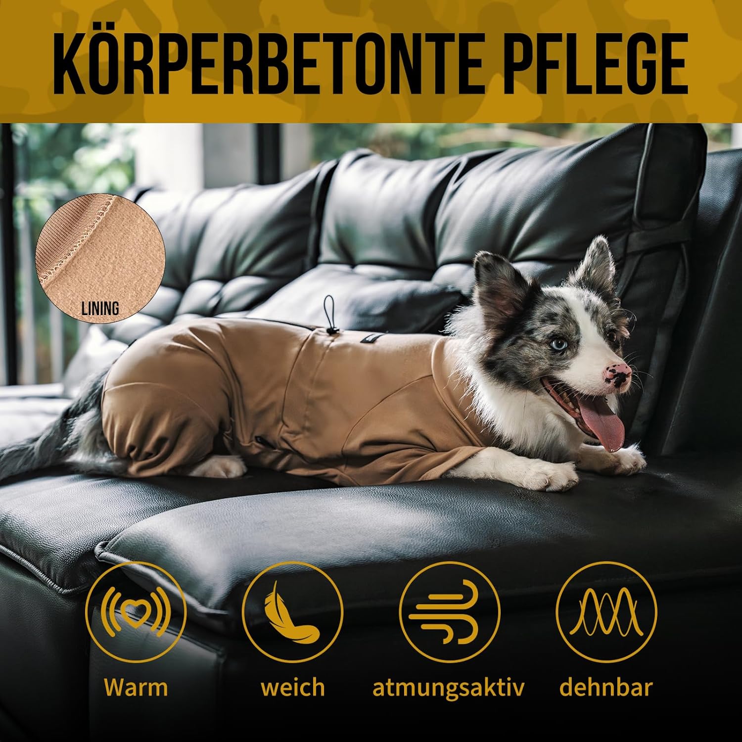 OneTigris Кучешки гащеризон, FUZZBUD Гащеризон за големи и средни кучета, Мек, топъл, еластичен, многофункционален кучешки гащеризон за линеене, алергии, против облизване, защита от рани - Кафяв L
