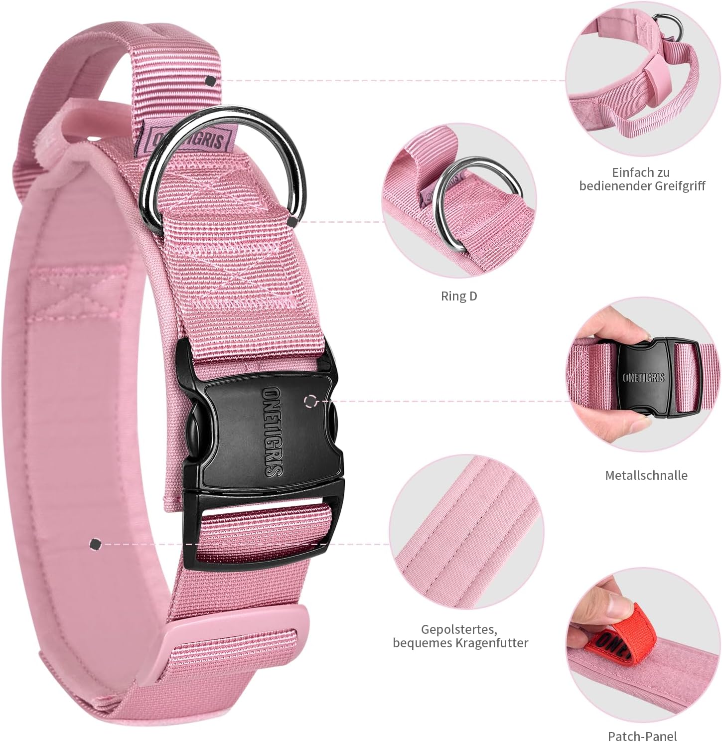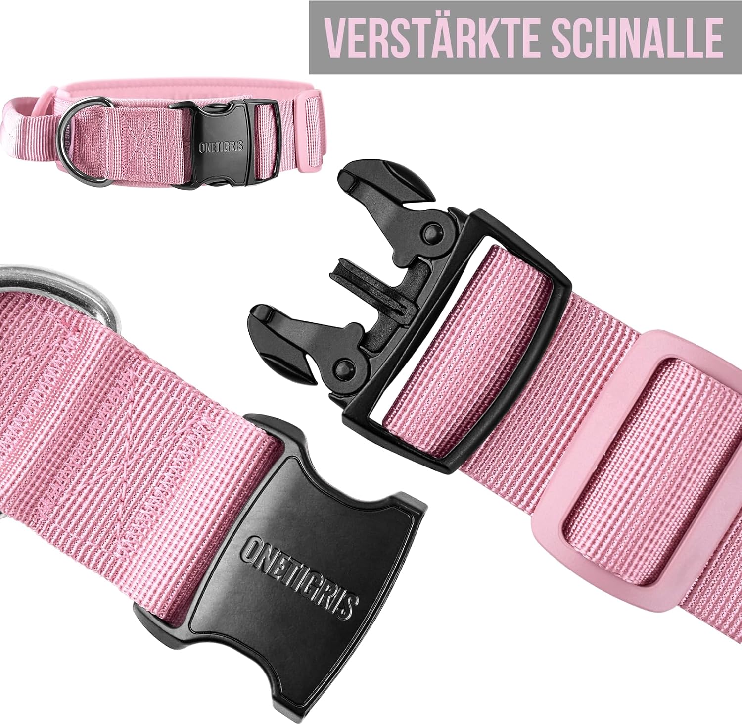 OneTigris Кучешки нашийник с метална катарама за кучета, розов, размер L
