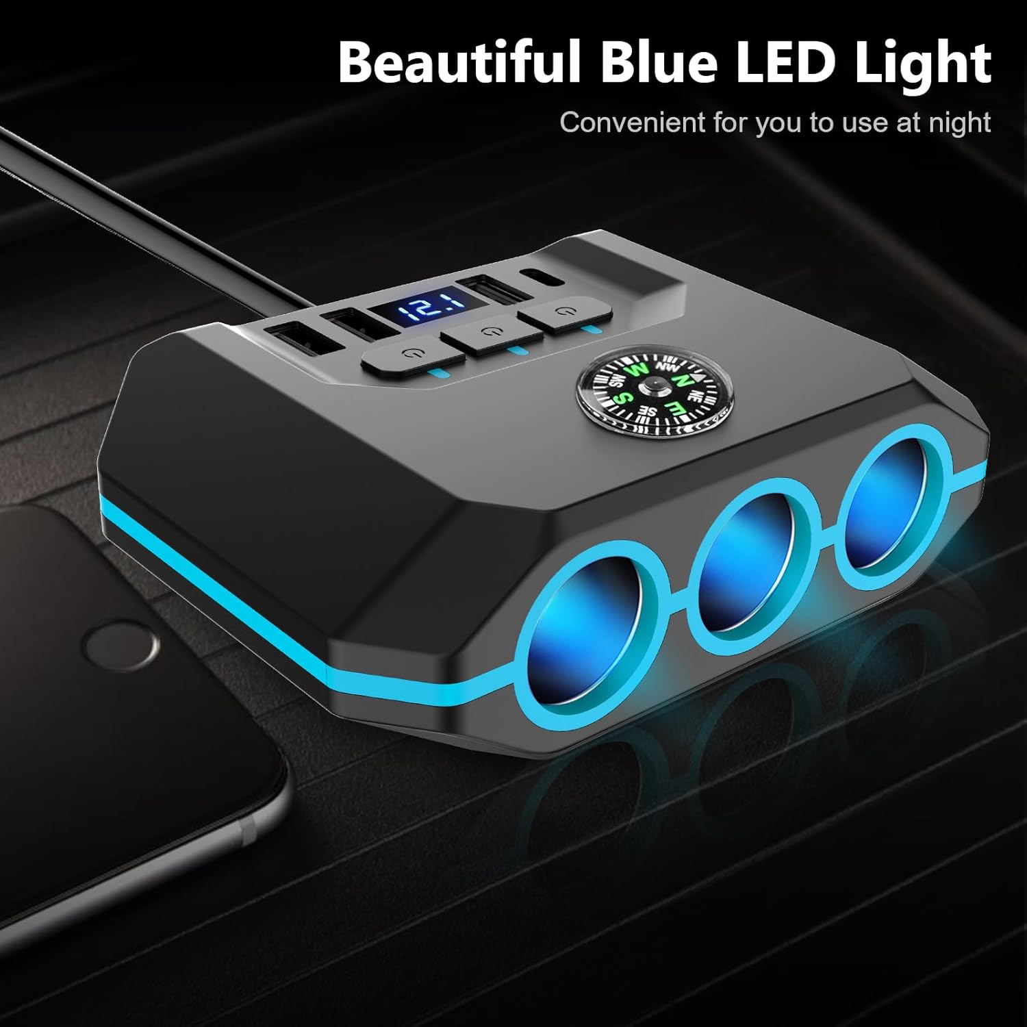 3. Keine Störung von den blendenden LED-Licht mehr. Das LED erzeugt weiches Licht und werden Sich beim Fahren nicht stören. Mit 25,5-Zoll-Kabel ist dieser zigarettenanzünder verteiler sehr flexibel . Sie können ihn an einem geeigneten Ort platzieren, wo Sie nicht durch das blendende LED-Licht in der Zigaretten-Ligter-Buchse gestört werden.