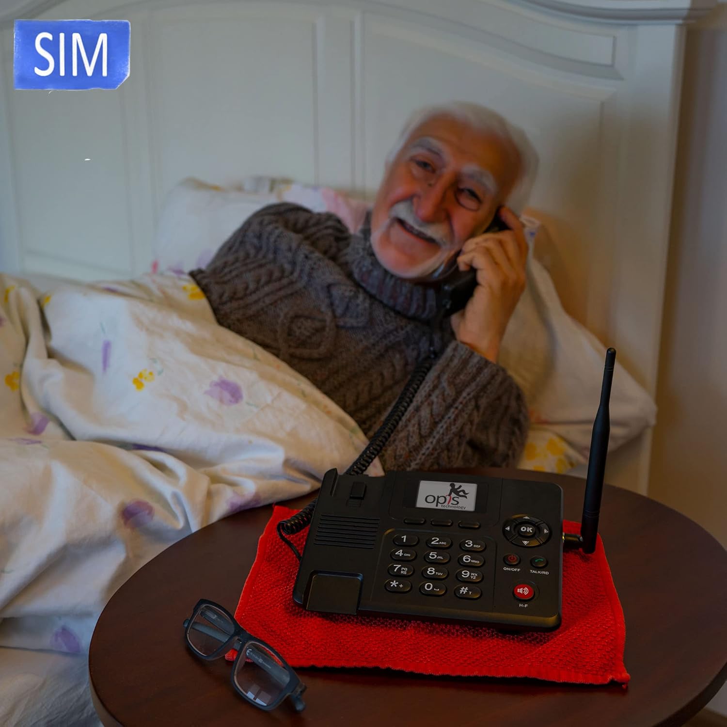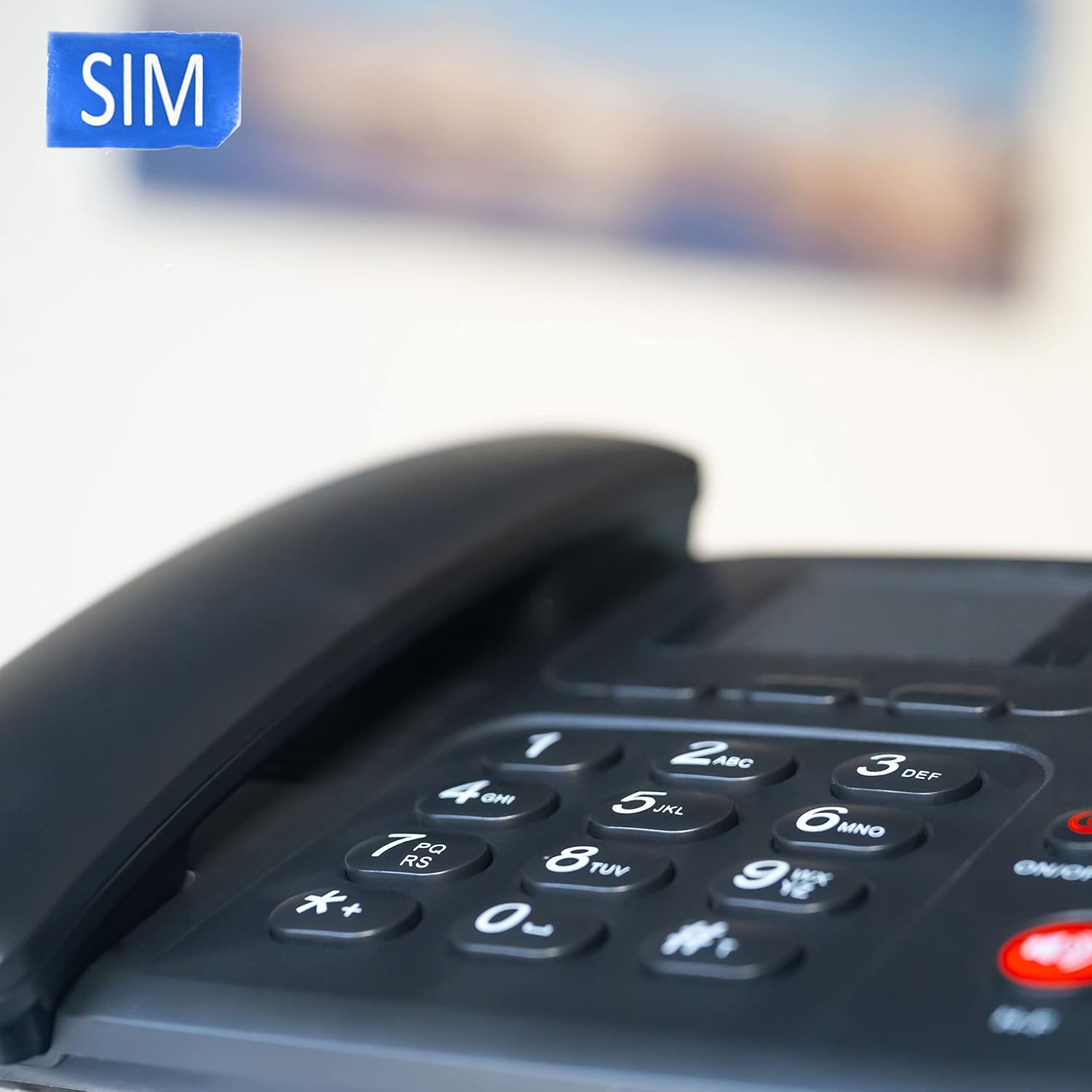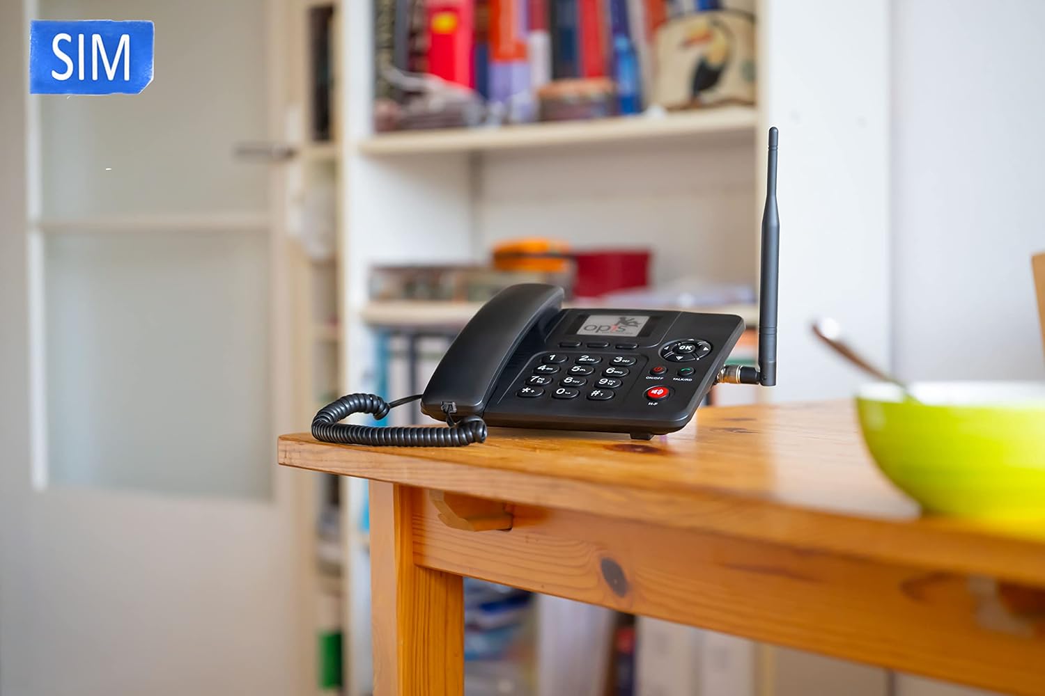 • Прост стационарен телефон с вградена SIM карта: алтернатива на мобилния телефон за възрастни хора без договор. Като мобилен телефон за възрастни хора с бутони, но като стационарен телефон със SIM карта.