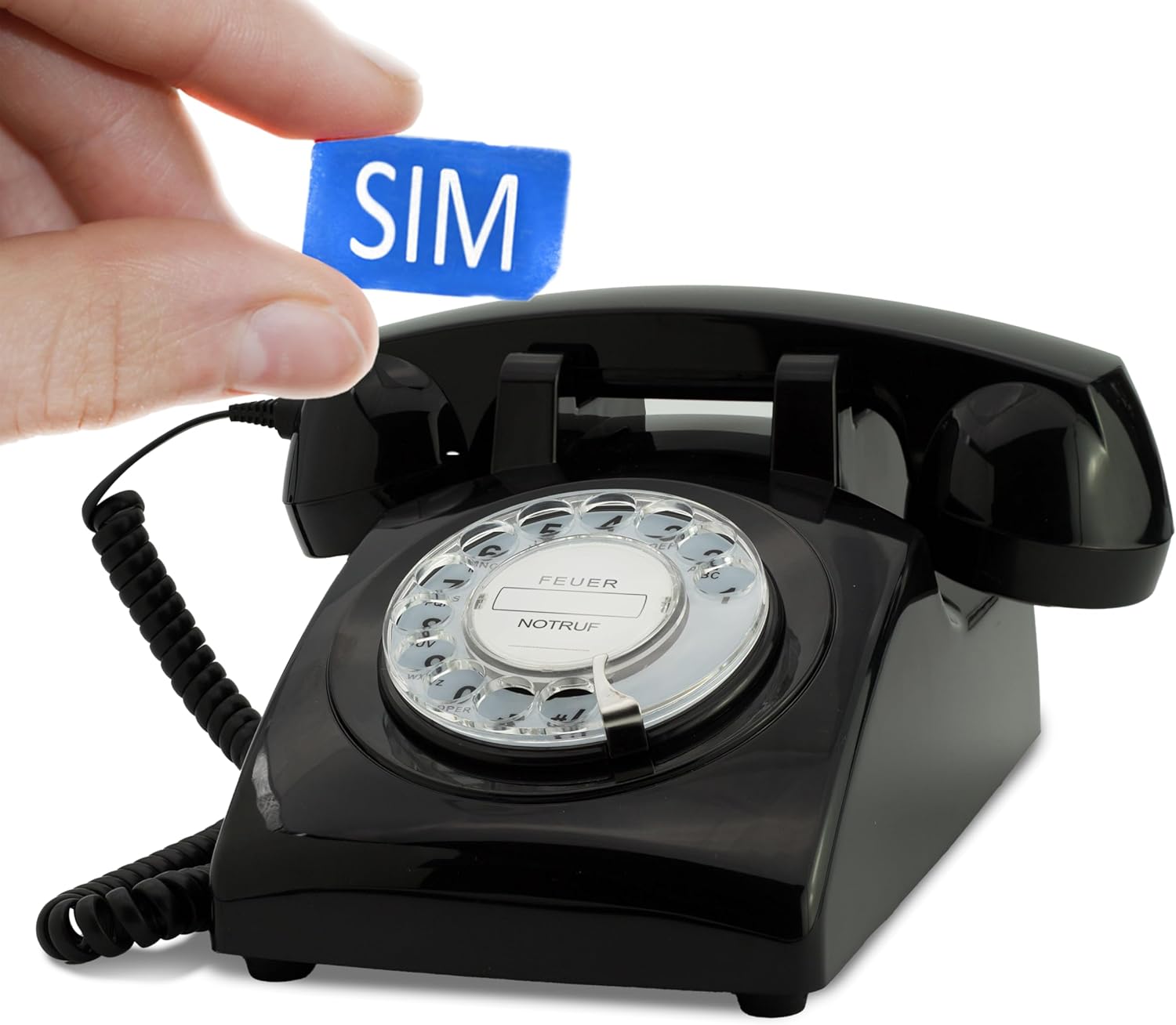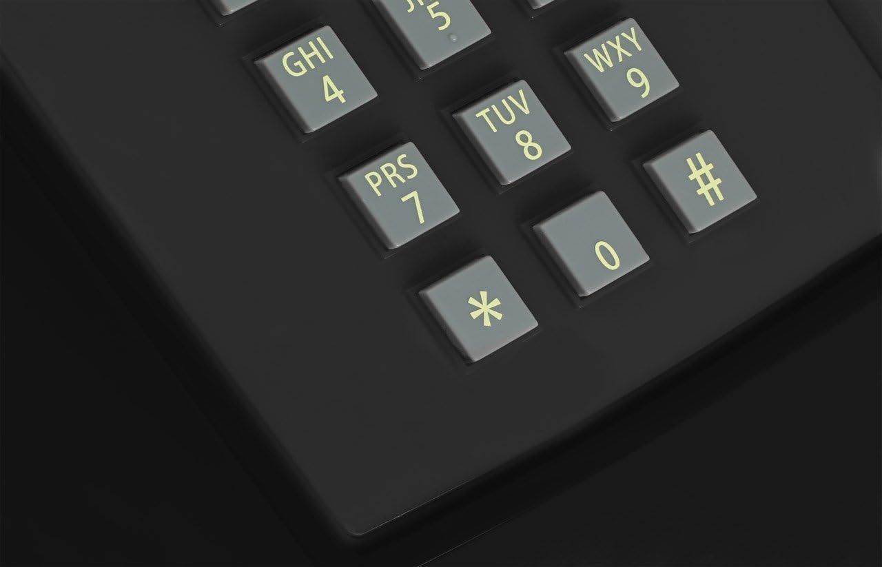 Описание PushMeFon Mobile: Телефон за възрастни хора със SIM карта, телефон с кабел за бюро като ретро стационарен телефон с функция за SIM карта в черно