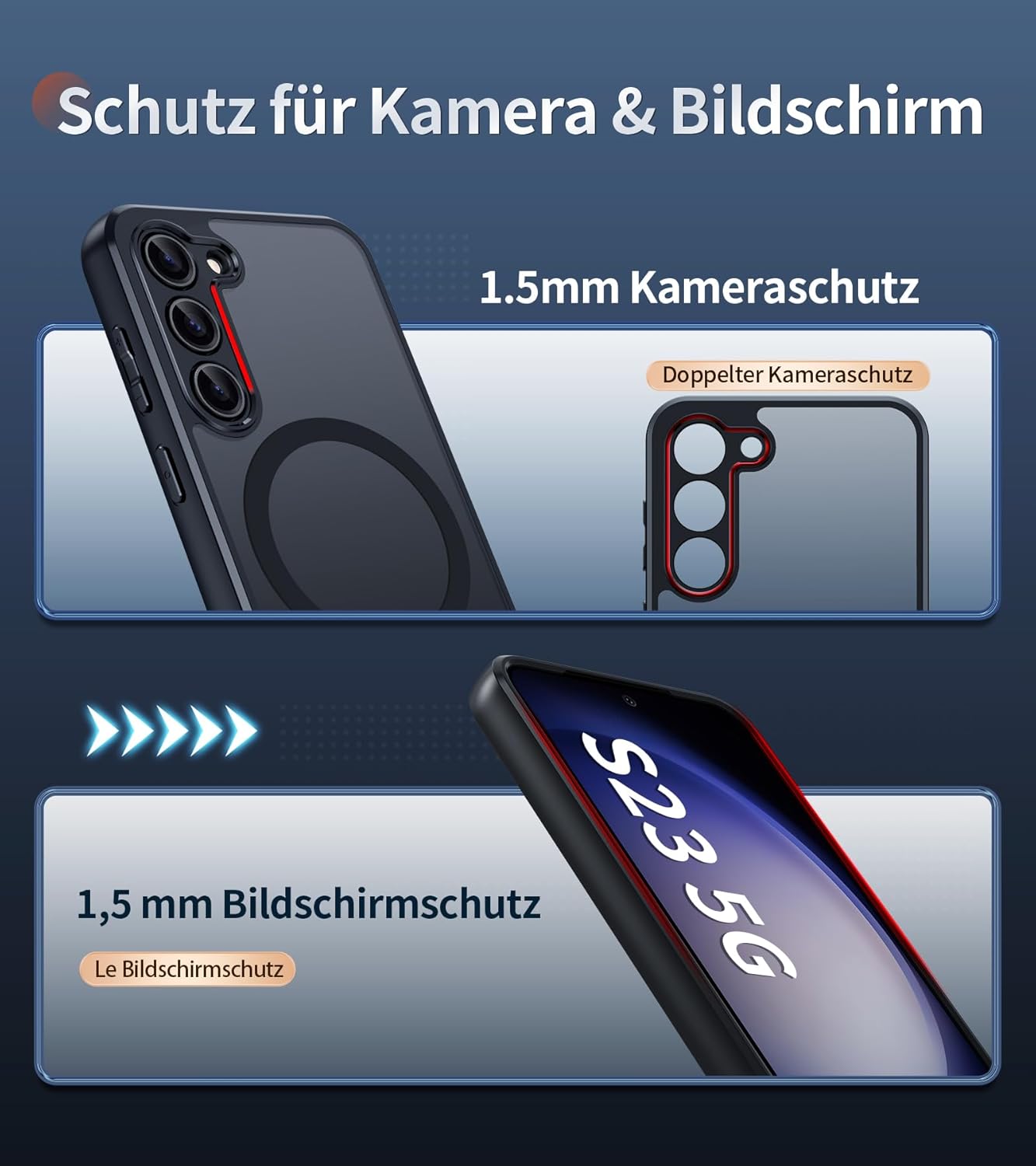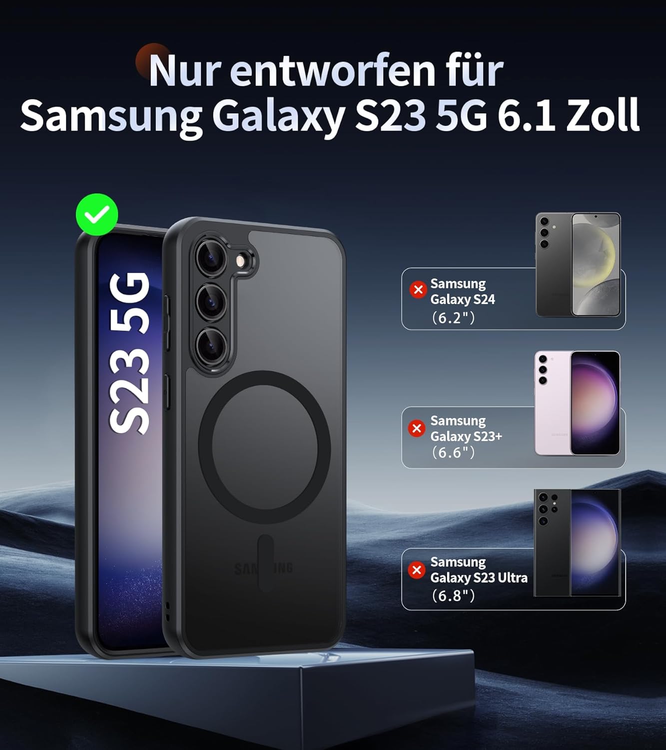 • Съвместимост и професионална поддръжка: перфектен дизайн, съвместим с калъфа за мобилен телефон Samsung Galaxy S23 (6,1 инча), всички изрези са прецизно изрязани според оригиналния мобилен телефон. Този магнитен калъф за мобилен телефон включва 2 защитни филма. -