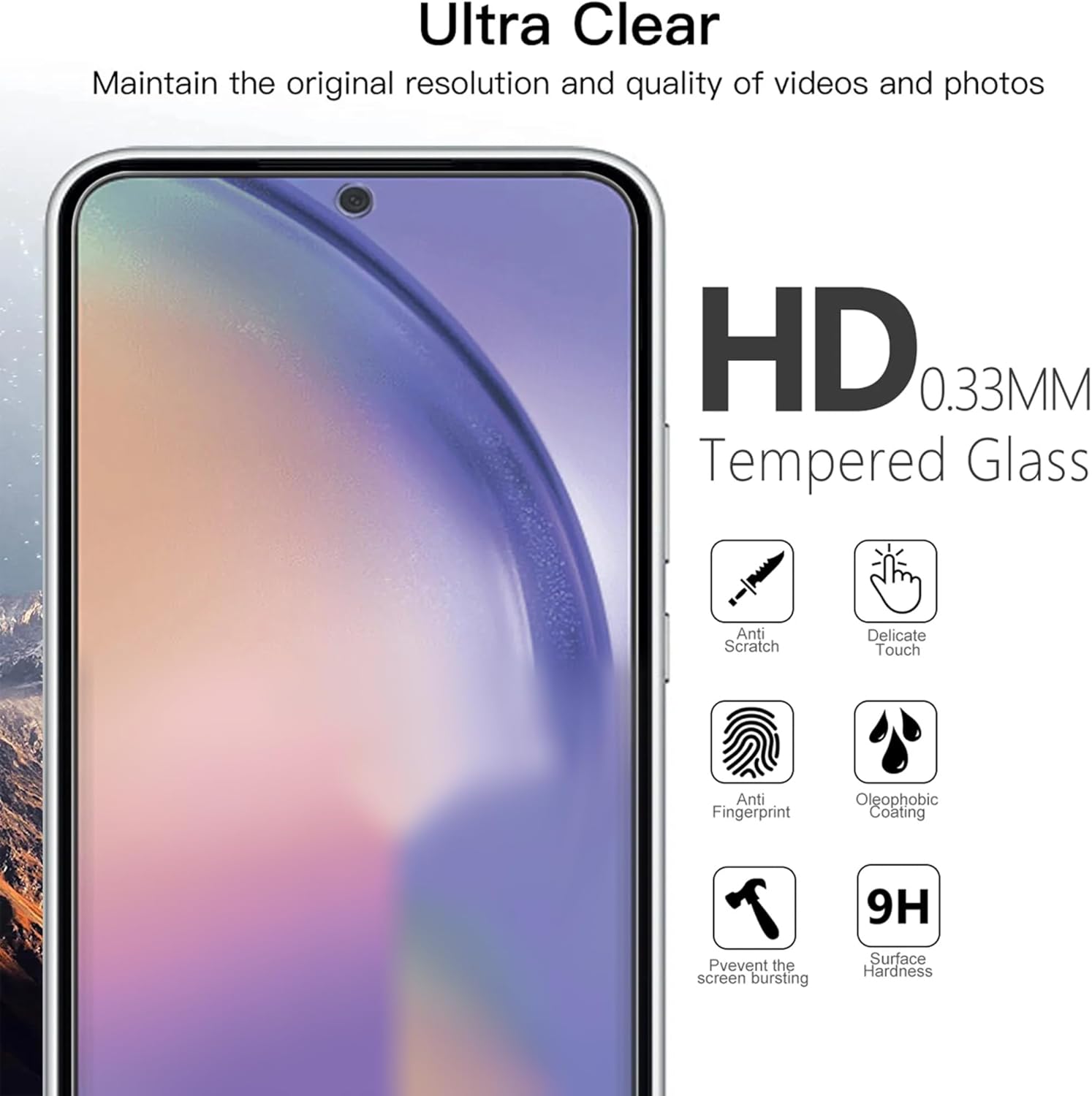 Oprimio 3-в-1 калъф за Samsung A14 [2 x стъклени протектора за екран] [1 x прозрачен калъф] [немски материал] [ултра тънък] прозрачен калъф за мобилен телефон от закалено стъкло за Samsung Galaxy A14