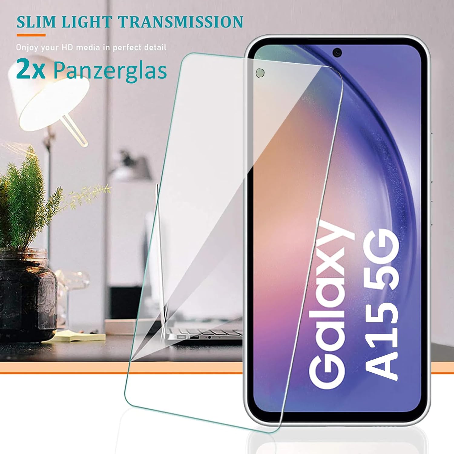 Oprimio 3-в-1 калъф за Samsung A15 [2 x стъклени протектора за екран] [1 x прозрачен калъф] [немски материал] [ултра тънък] прозрачен калъф за мобилен телефон от закалено стъкло за Samsung Galaxy A15
