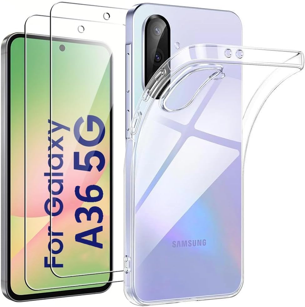 Oprimio 3-в-1 калъф за Samsung A36 [2 x стъклени протектори за екран] [1 x прозрачен калъф] ​​[немски материал] [ултра тънък] прозрачен калъф за мобилен телефон от закалено стъкло за Samsung Galaxy A36 5G