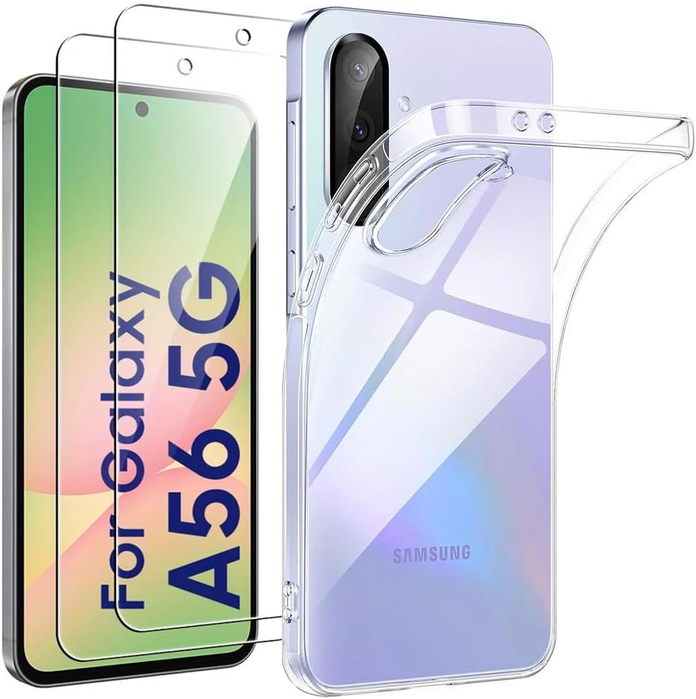 Oprimio 3-в-1 калъф за Samsung A56 [2 x стъклени протектора за екран] [1 x прозрачен калъф] ​​[немски материал] [ултра тънък] прозрачен калъф за мобилен телефон от закалено стъкло за Samsung Galaxy A56 5G