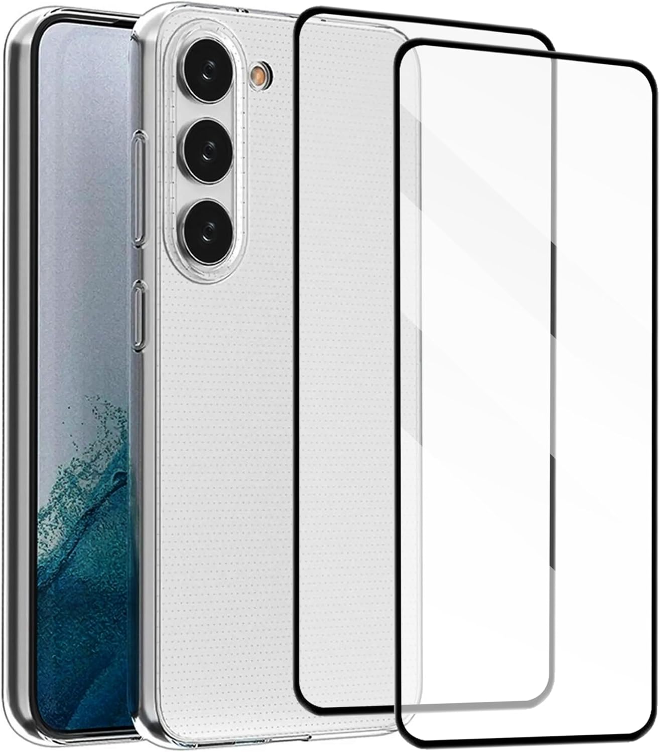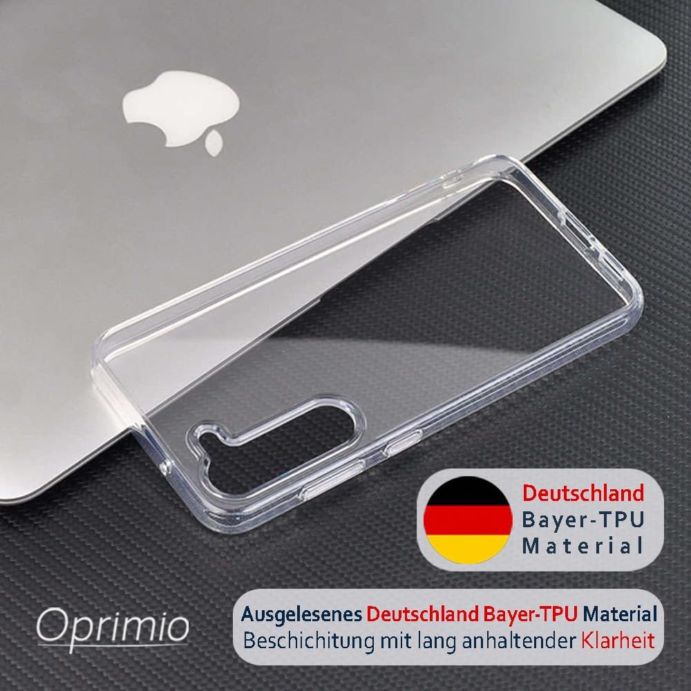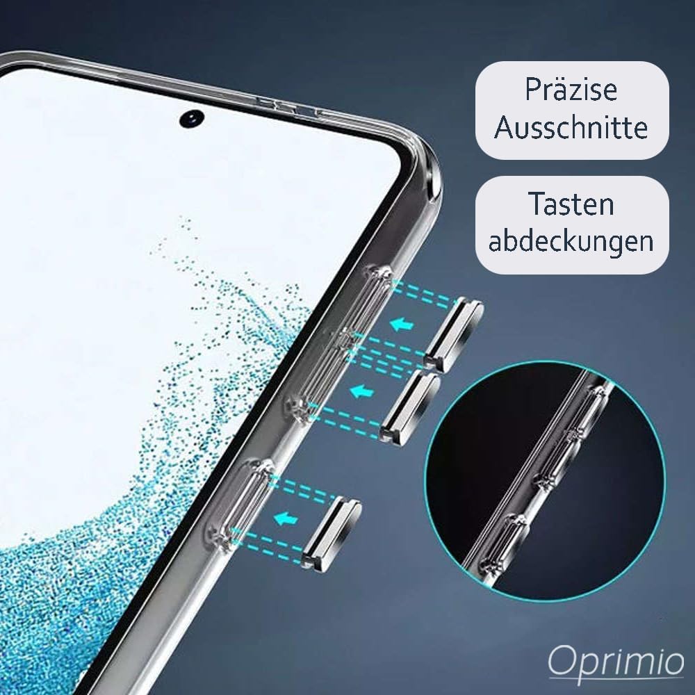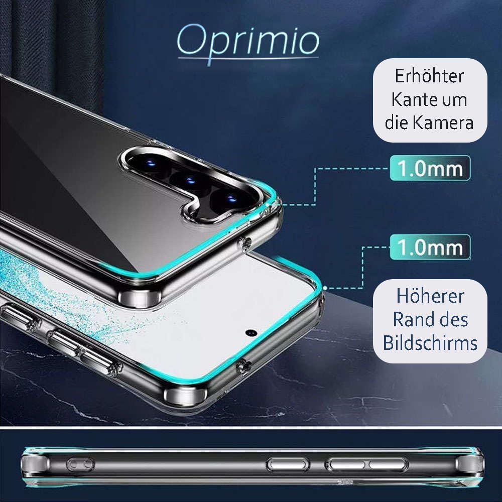 Oprimio 3-в-1 калъф за Samsung S24 [2 x стъклени протектора за екран] [1 x прозрачен калъф] ​​[немски материал] [ултра тънък] прозрачен калъф за мобилен телефон от закалено стъкло за Samsung Galaxy S24