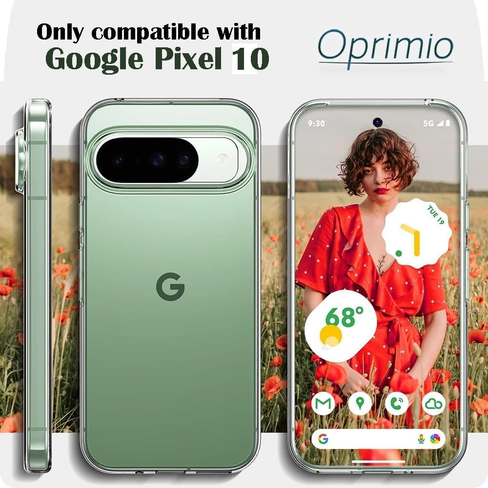 Oprimio Crystal Clear Case за Google Pixel 10, Силиконов калъф, 100% прозрачен, немски материал, ултра тънък, прозрачен калъф за мобилен телефон за Google Pixel 10