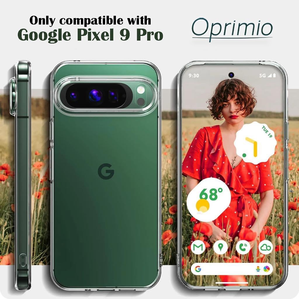 Oprimio Crystal Clear Case за Google Pixel 9 Pro, силиконов калъф, 100% прозрачен, немски материал, ултра тънък, прозрачен калъф за мобилен телефон за Google Pixel 9 Pro