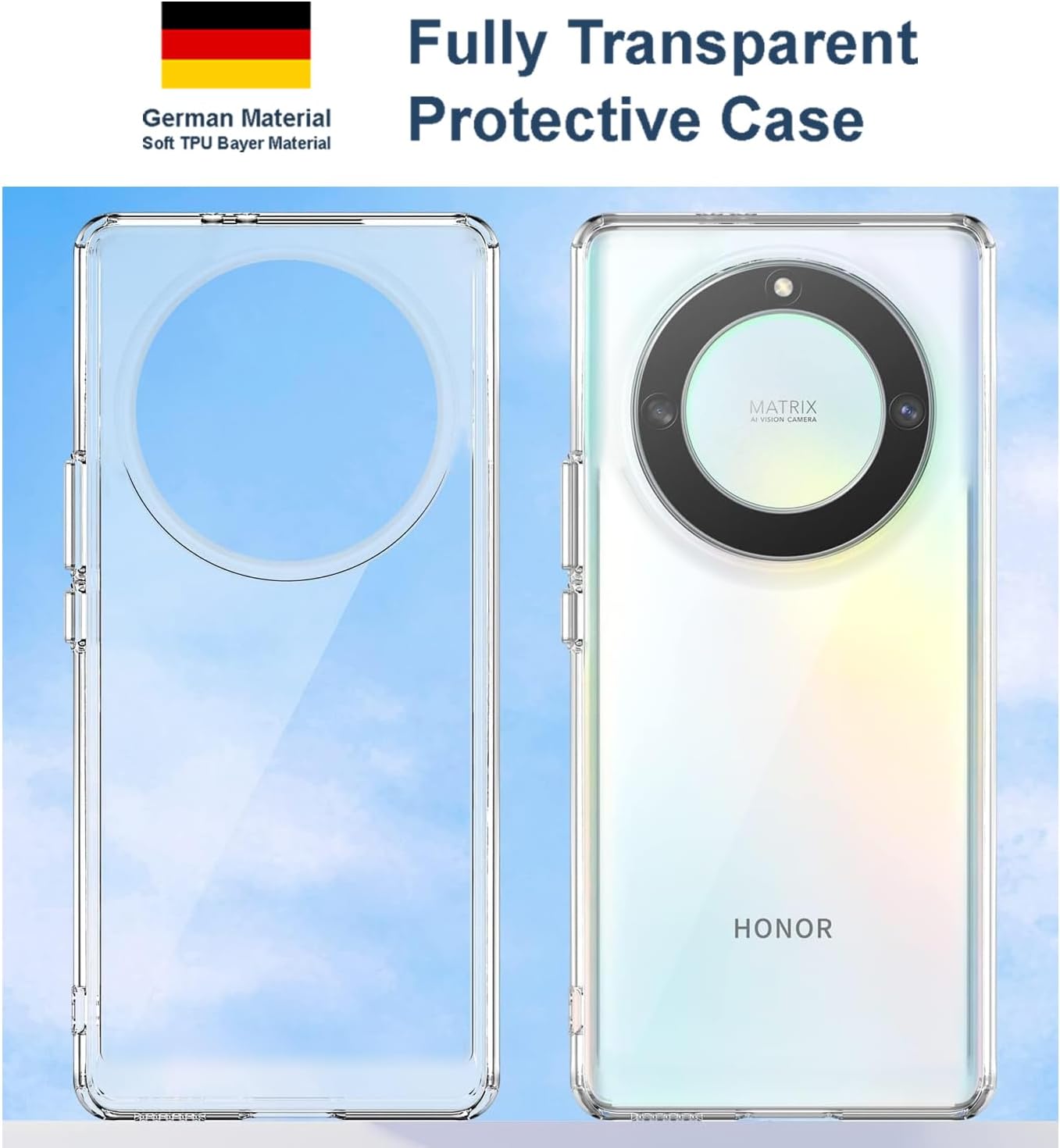 Oprimio Crystal Clear Case за Honor Magic5 Lite [Силиконов калъф] [%100 Прозрачен] [Немски материал] Ултра тънък прозрачен калъф за мобилен телефон Honor Magic5 Lite