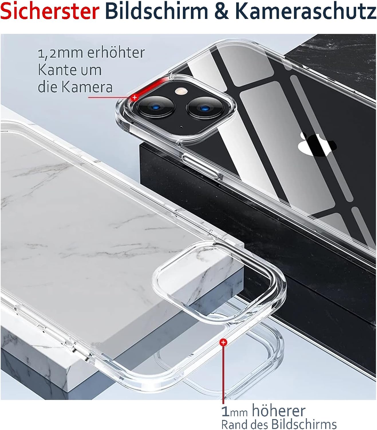 • Screen and camera protection: the case is raised by 1 mm around the camera to prevent scratches. The slightly raised edges prevent your camera and display from rubbing and scratching against flat surfaces. A combination of flexible thermoplastic polyurethane (TPU) and shock-absorbing, air-cushioned protective corners on the back of the phone case offers reliable protection against drops and other impacts.