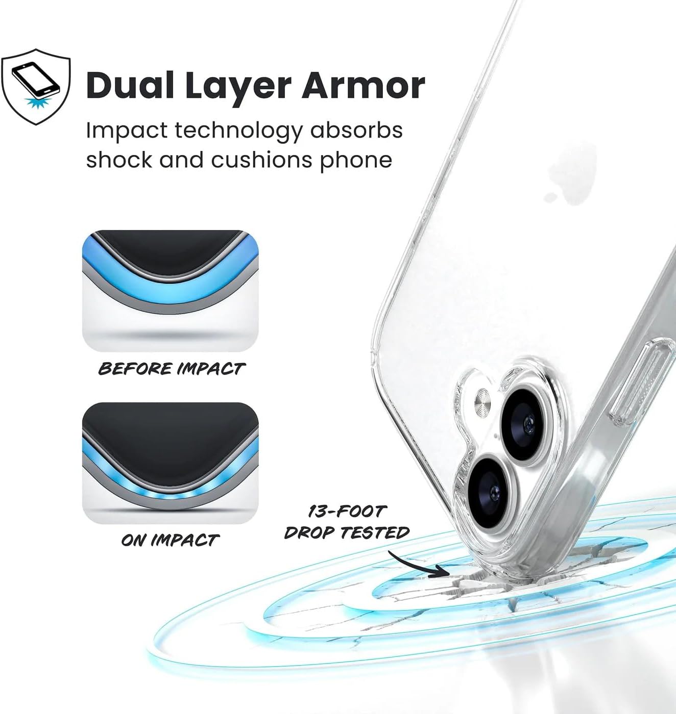 • Screen and camera protection: the case is raised by 1 mm around the camera to prevent scratches. The slightly raised edges prevent your camera and display from rubbing and scratching against flat surfaces. A combination of flexible thermoplastic polyurethane (TPU) and shock-absorbing, air-cushioned protective corners on the back of the phone case offers reliable protection against drops and other impacts.