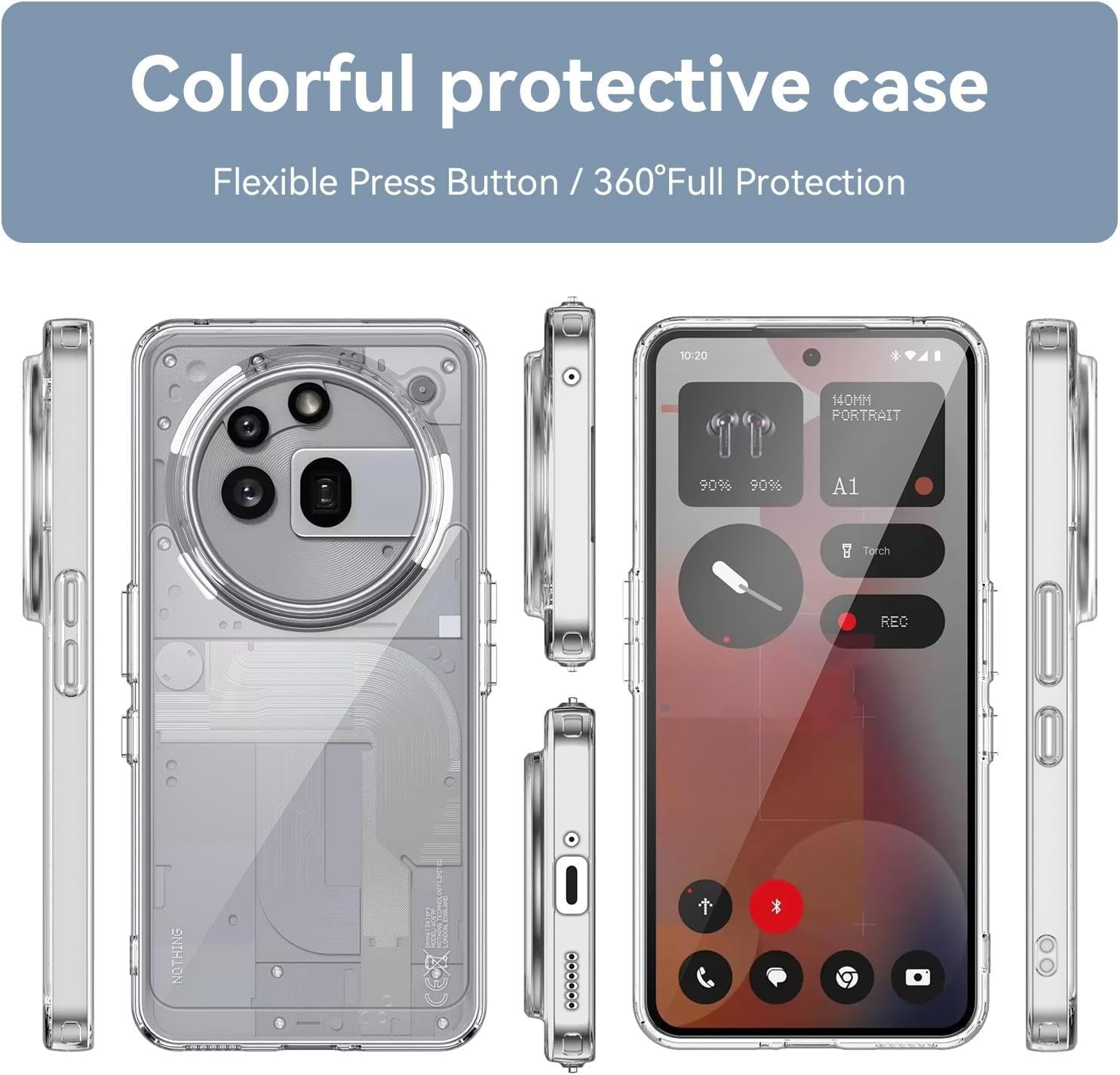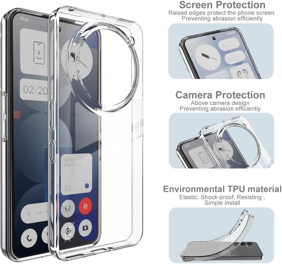 • Screen and camera protection: the case is raised by 1 mm around the camera to prevent scratches. The slightly raised edges prevent your camera and display from rubbing and scratching against flat surfaces. A combination of flexible thermoplastic polyurethane (TPU) and shock-absorbing, air-cushioned protective corners on the back of the phone case offers reliable protection against drops and other impacts.