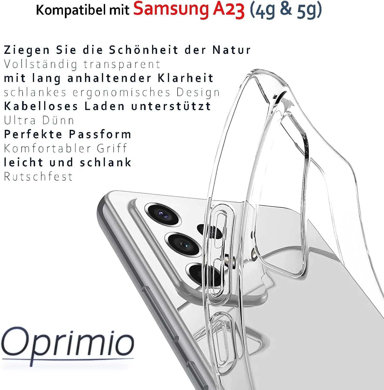 Oprimio Crystal Clear Case за Samsung A23, Силиконов калъф, 100% прозрачен, немски материал, ултра тънък, прозрачен калъф за мобилен телефон за Samsung Galaxy A23 4G / 5G