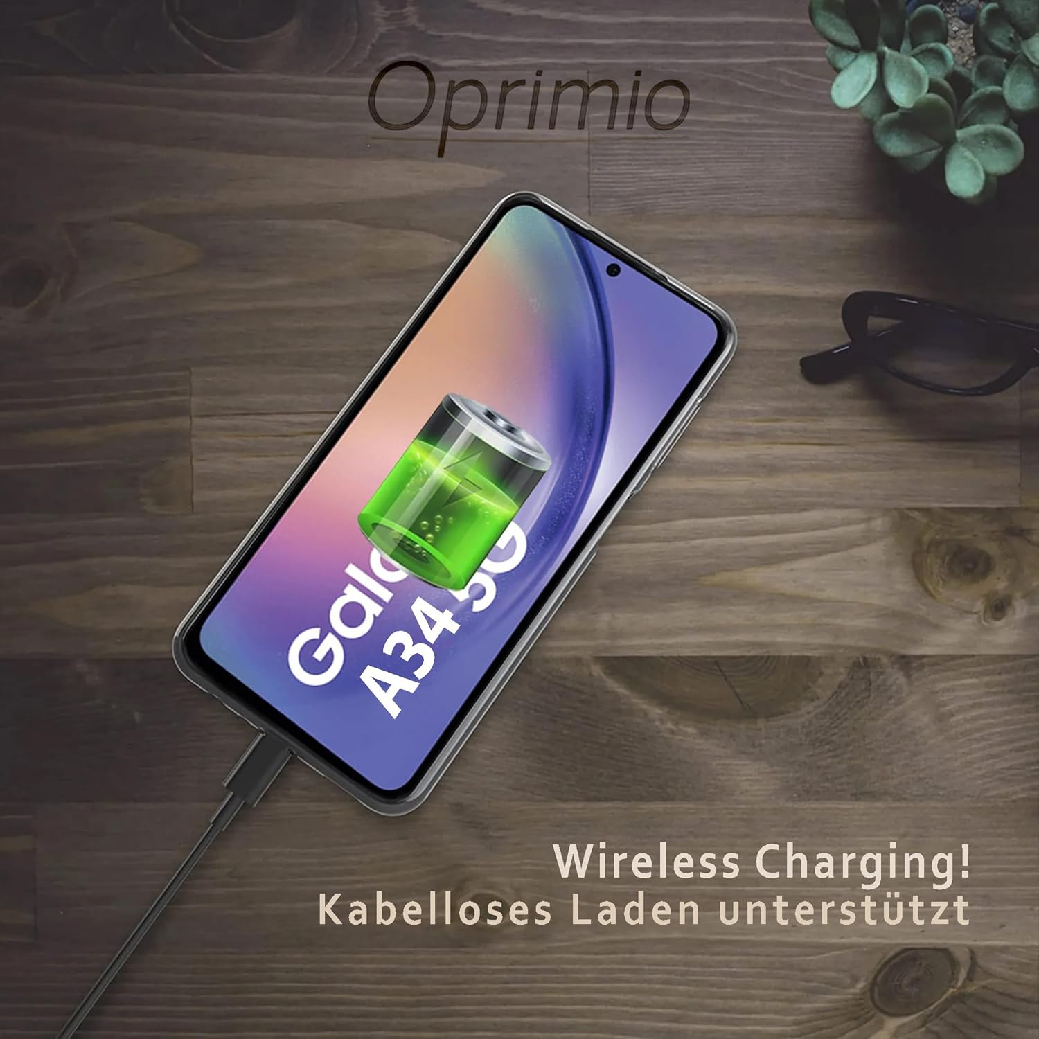 Oprimio Crystal Clear Case за Samsung A34 [Силиконов калъф] [%100 Прозрачен] [Немски материал] [Ултра тънък] Прозрачен калъф за мобилен телефон за Samsung Galaxy A34 5G