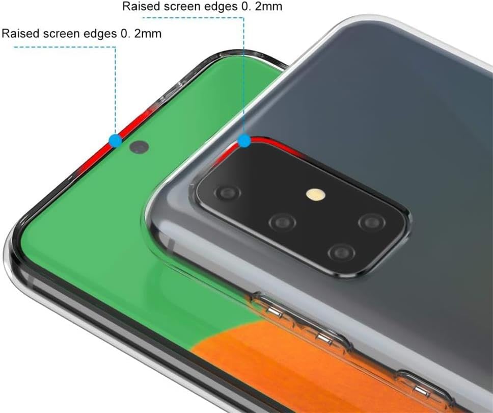 • Screen and camera protection: the case is raised by 1 mm around the camera to prevent scratches. The slightly raised edges prevent your camera and display from rubbing and scratching against flat surfaces. A combination of flexible thermoplastic polyurethane (TPU) and shock-absorbing, air-cushioned protective corners on the back of the phone case offers reliable protection against drops and other impacts.