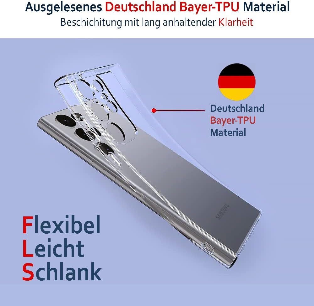 • Premium material: high-quality thermoplastic polyurethane (TPU) made by Bayer in Germany; no yellowing due to the anti-yellowing coating with long-lasting clarity. The case fully maintains the original design of your device and is very light and slim, so that it feels as if you don’t have a case on your smartphone.