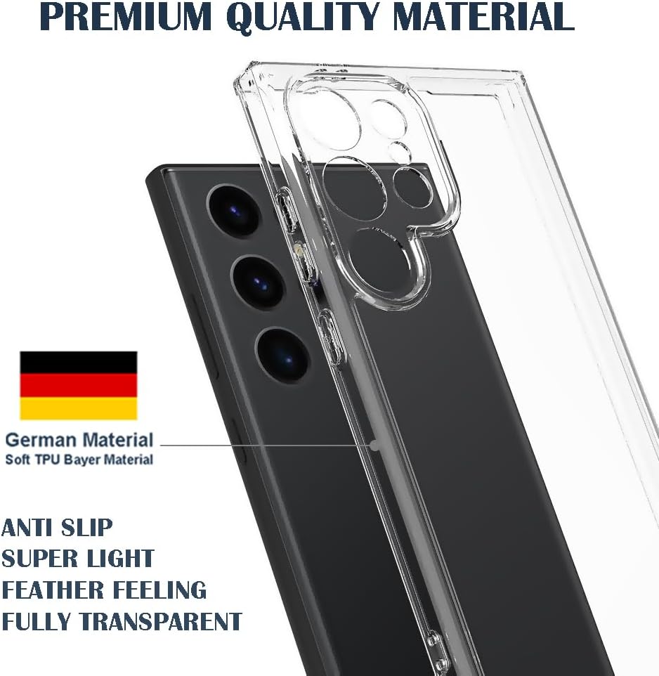 Oprimio Crystal Clear Case за Samsung S24 Ultra [Силиконов калъф] ​​[100% прозрачен] [Немски материал] [Ултра тънък] Прозрачен калъф за мобилен телефон за Samsung Galaxy S24 Ultra