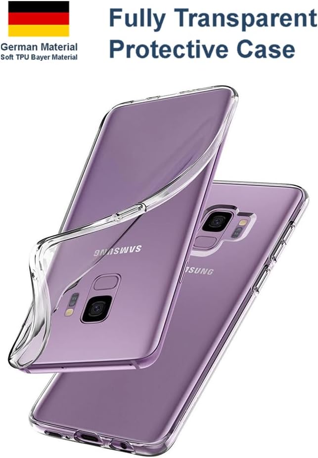 Oprimio Crystal Clear Case за Samsung S9+, силиконов калъф, 100% прозрачен, немски материал, ултра тънък, прозрачен калъф за мобилен телефон за Samsung Galaxy S9 Plus