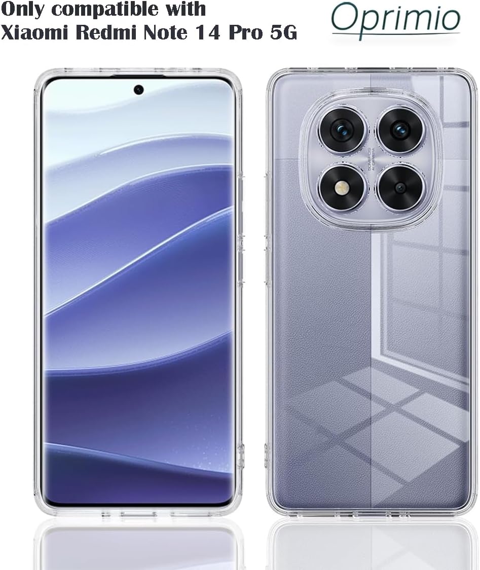 Oprimio Crystal Clear Case за Xiaomi Redmi Note 14 Pro 5G [Силиконов калъф] [%100 Прозрачен] [Немски материал] [Ултра тънък] Прозрачен калъф за мобилен телефон за Xiaomi Redmi Note 14 Pro 5G
