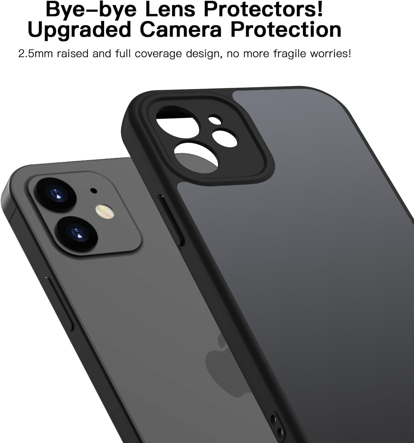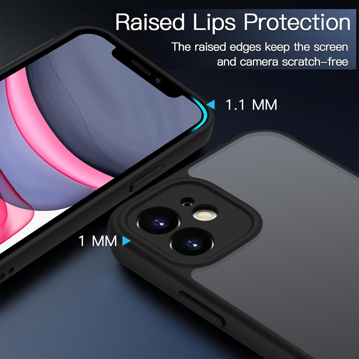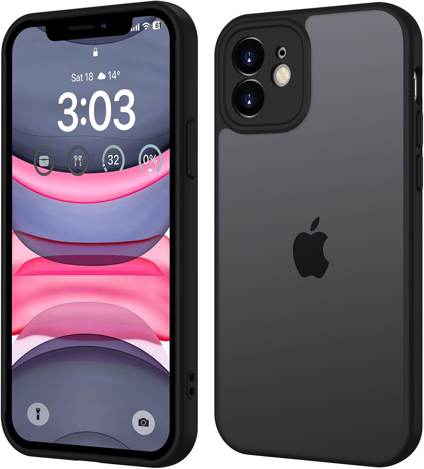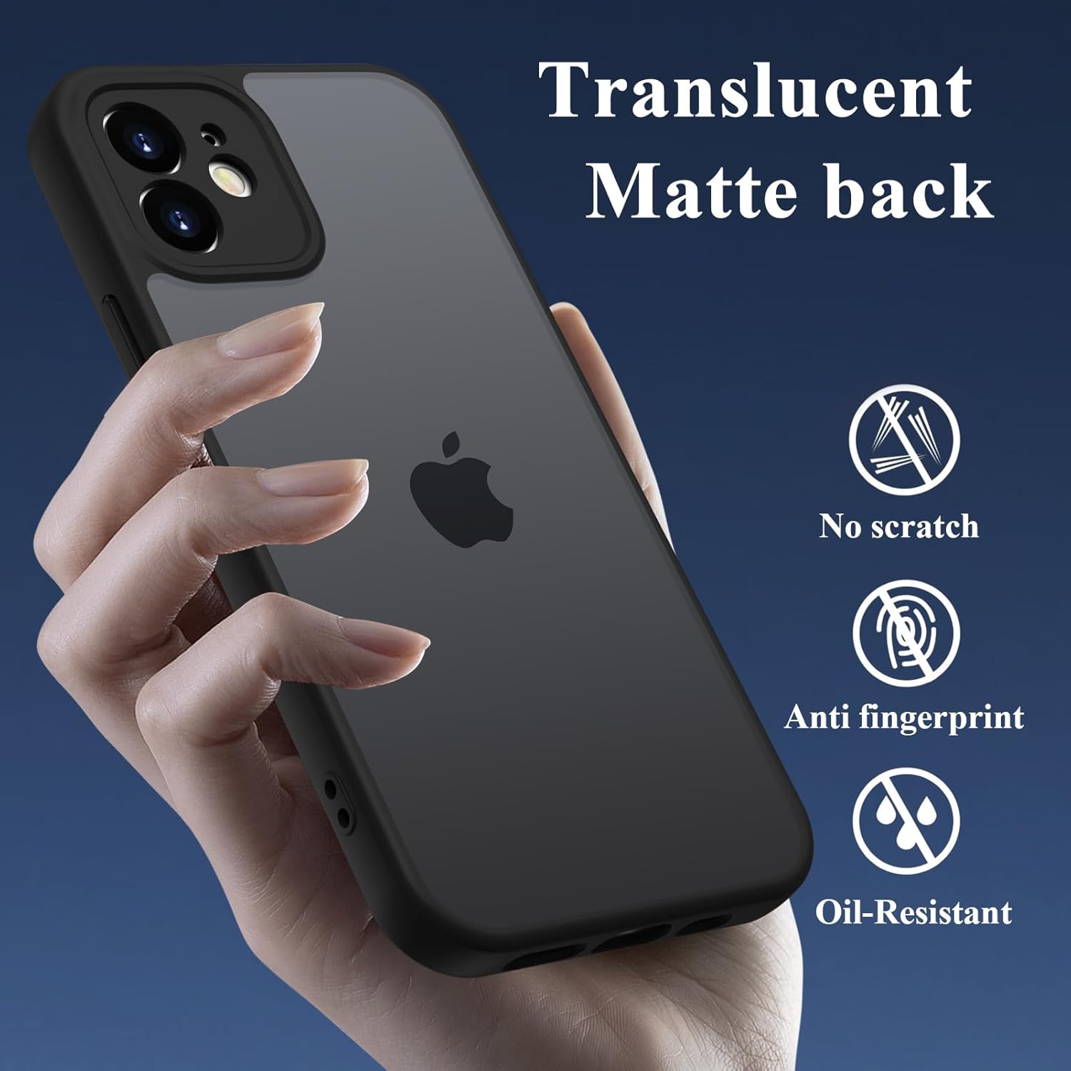 ORDA калъф за iPhone 11 6.1 инча, пълна защита на камерата, удароустойчив, устойчив на надраскване, прозрачен защитен калъф за гръб, матов калъф за мобилен телефон против пръстови отпечатъци за iPhone 11 (черен)