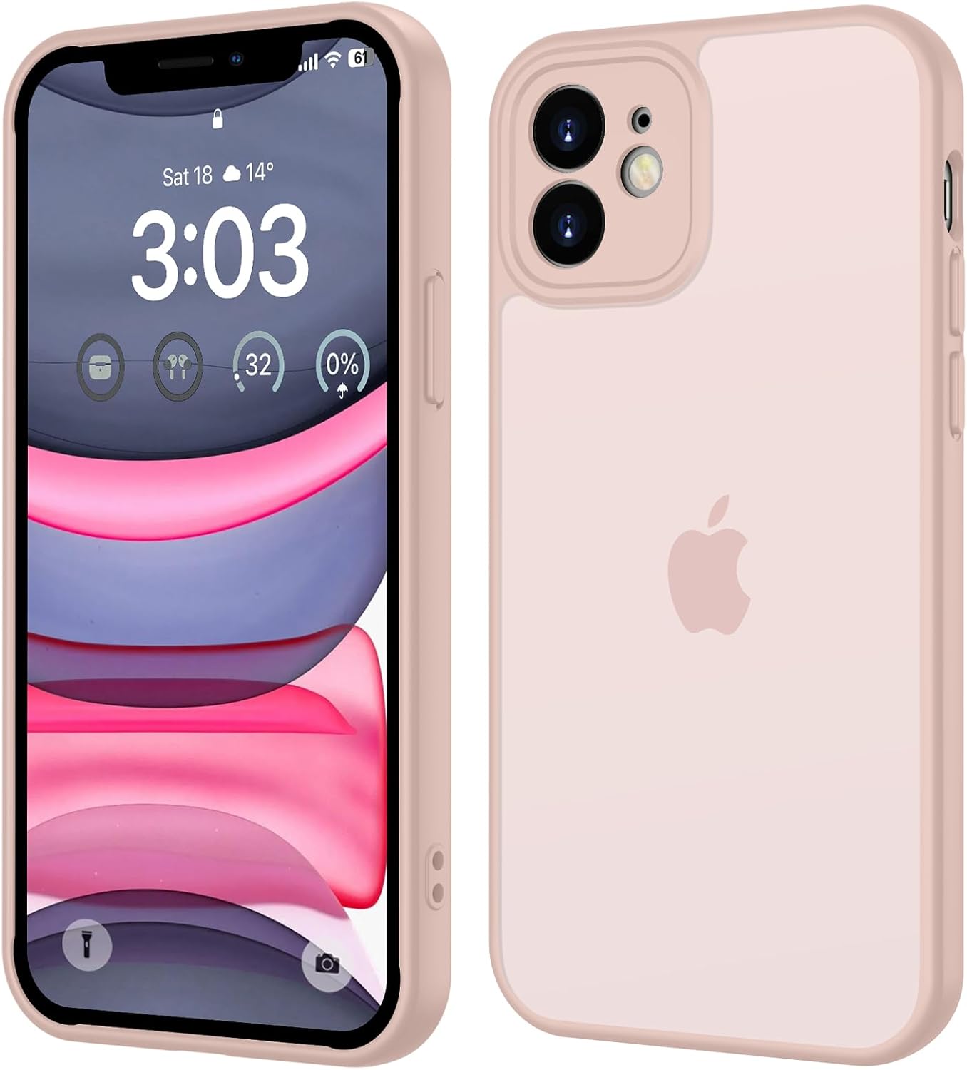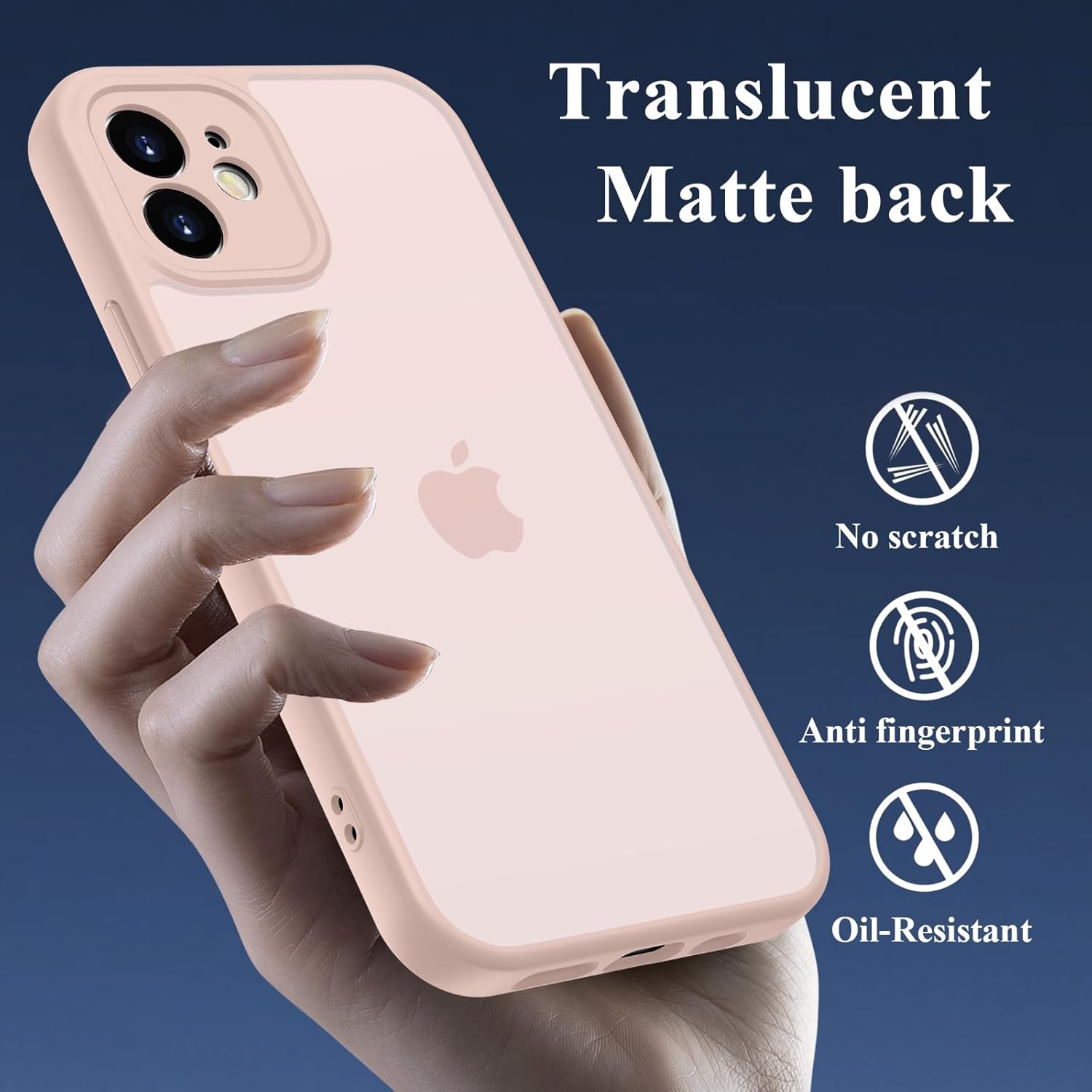 ORDA калъф за iPhone 11 6.1 инча, пълна защита на камерата, удароустойчив, устойчив на надраскване, прозрачен защитен калъф за гръб, матов калъф за мобилен телефон против пръстови отпечатъци за iPhone 11 (розов)