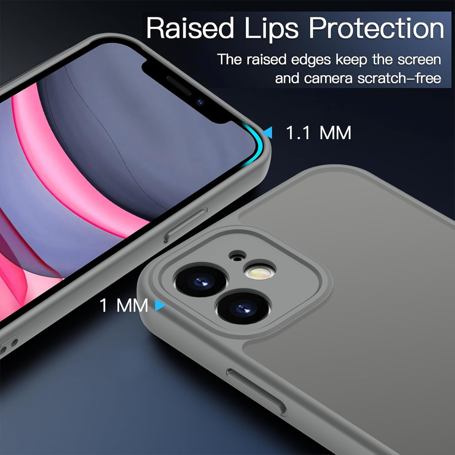 ORDA калъф за iPhone 11 6.1 инча, пълна защита на камерата, удароустойчив, устойчив на надраскване, прозрачен защитен калъф за гръб, матов калъф за мобилен телефон против пръстови отпечатъци за iPhone 11 (сив)