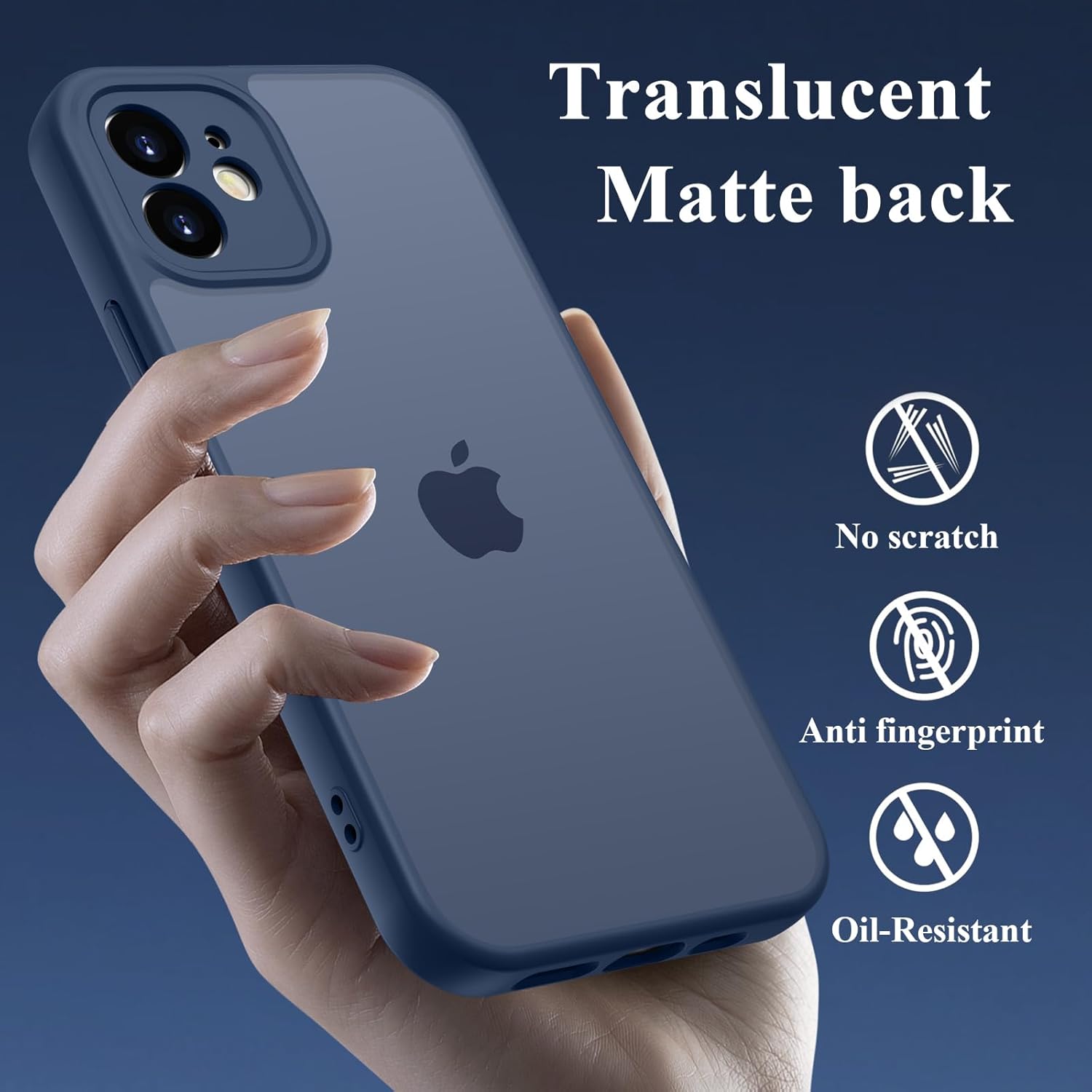 ORDA калъф за iPhone 11 6.1 инча, пълна защита на камерата, удароустойчив, устойчив на надраскване, прозрачен защитен калъф за гръб, матов калъф за мобилен телефон против пръстови отпечатъци за iPhone 11 (тъмносин)