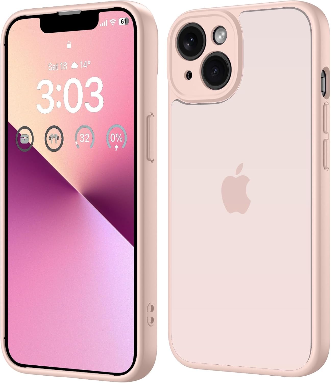 ORDA калъф за iPhone 13 6.1 инча, пълна защита на камерата, удароустойчив, устойчив на надраскване, прозрачен защитен калъф за гръб, матов калъф за мобилен телефон против пръстови отпечатъци за iPhone 13 (розов)